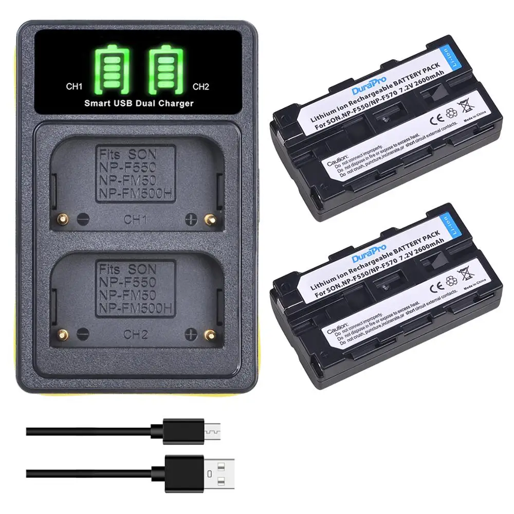Аккумулятор для камеры 2PC 2600 мАч NP F550 + зарядное устройство USB с Type C для Sony