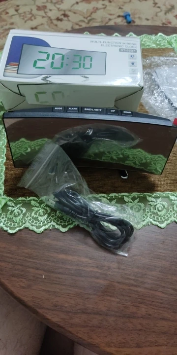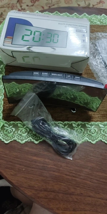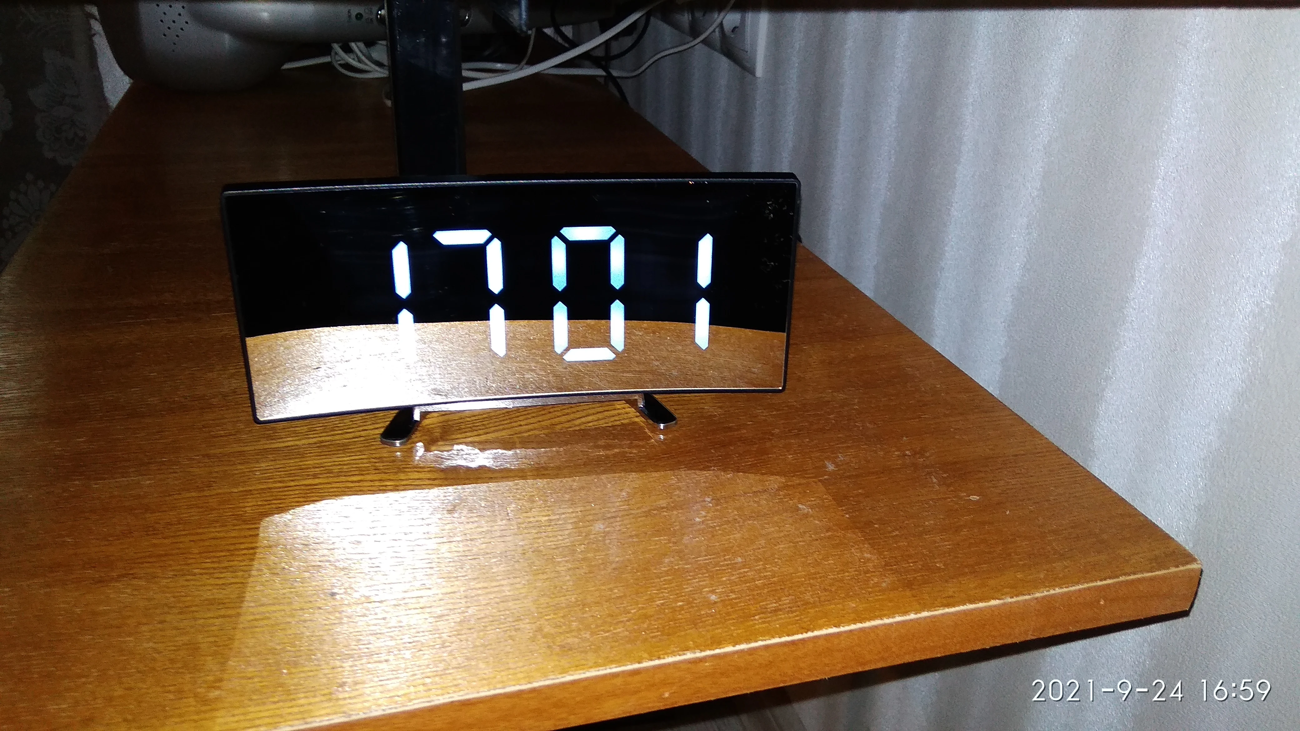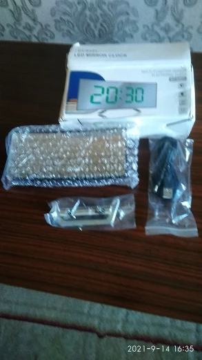 Заказал Sep. 06 2021. Продавец отправил заказ на следующий же день. 27 сентября посылку получил на почте. Трек был с полным отслеживанием, но на каком-то этапе 2 моих посылки объединили в одну и присвоили новый трек-номер с полным отслеживанием. Коробка была сильно помята, но содержимое не пострадало. На блестящей под хром подставке, видны чёрные точки. На ощупь шероховатые. Внешний вид, размеры и функционал соответствует заявленному. Питание от электросети (БП в комплекте нет, только USB-провод). Три батарейки ААА (в комплект не входят), видимо нужны для сохранения хода часов при отключении от электросети. Единственный минус - это синхронное с морганием двоеточия, "притухание" левого сегмента минут. С продавцом не общался.