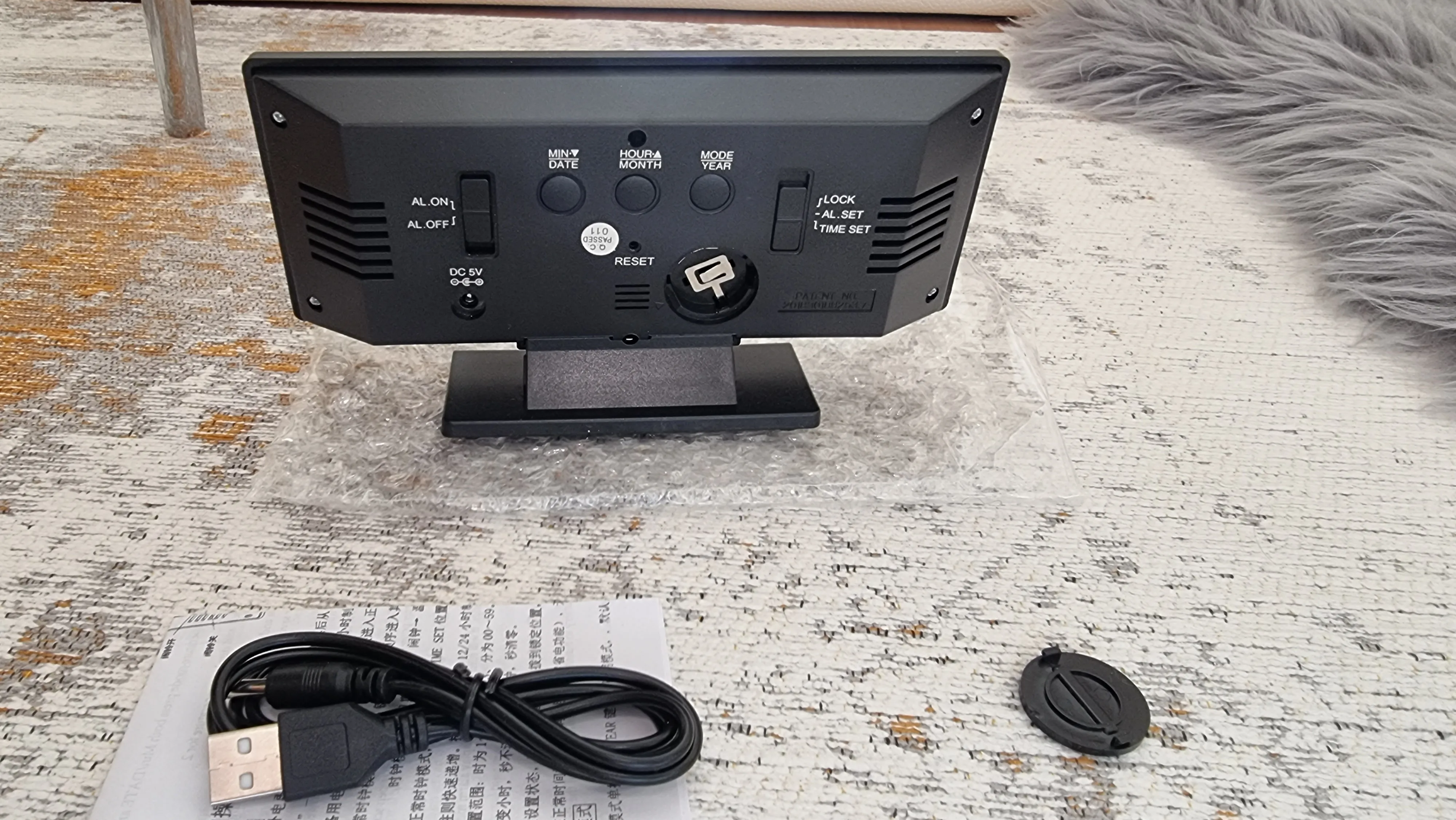 Быстрая доставка, посылка пришла почти не помята в коробке и полиэтиленовом пакете без пупырки, что плохо. Отличные часы от блока питания. В комплекте шнур питания, батарейки CR2032 для памяти телефона в комплекте нет. Подошла CR2025. Инструкция на английском, но разобрался быстро и без нее, не разобрался лишь с яркостью подсветки, но это позже...
