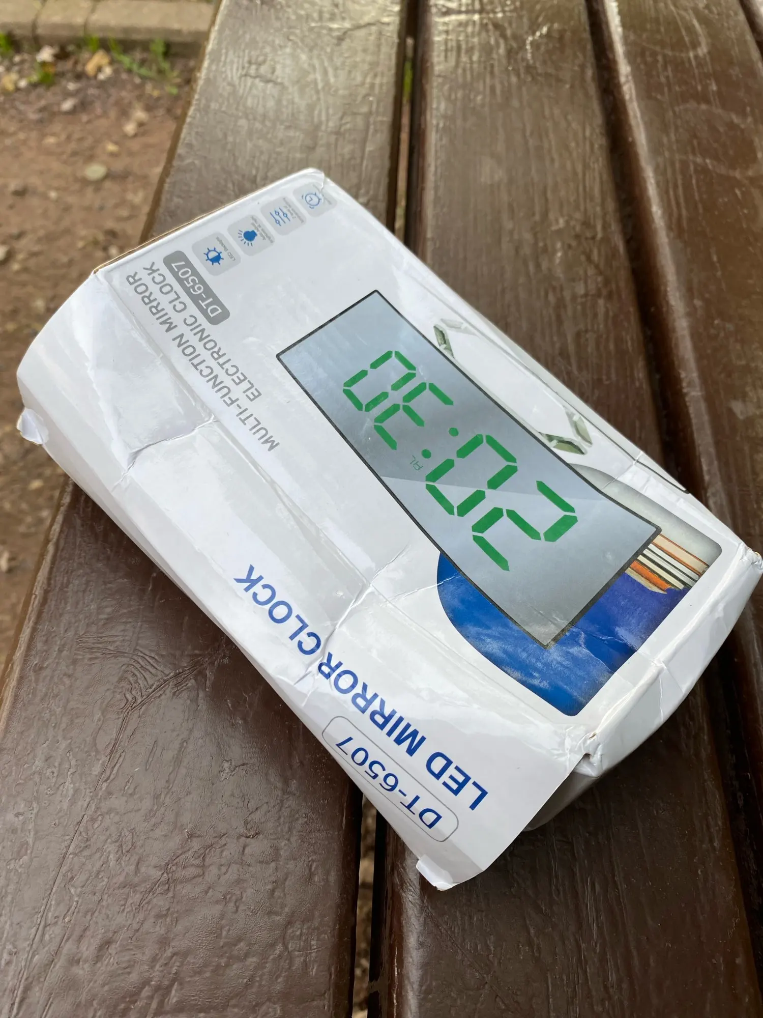 Доставка за 16 дней, получение 5Post (Пятерочка)-отлично. Описанию будильник соответствует. Вставил батарейки, подключил адаптер питания-всё работает. Настраивается нормально. Время покажет его работоспособность. Продавца всем советую, ему спасибо.