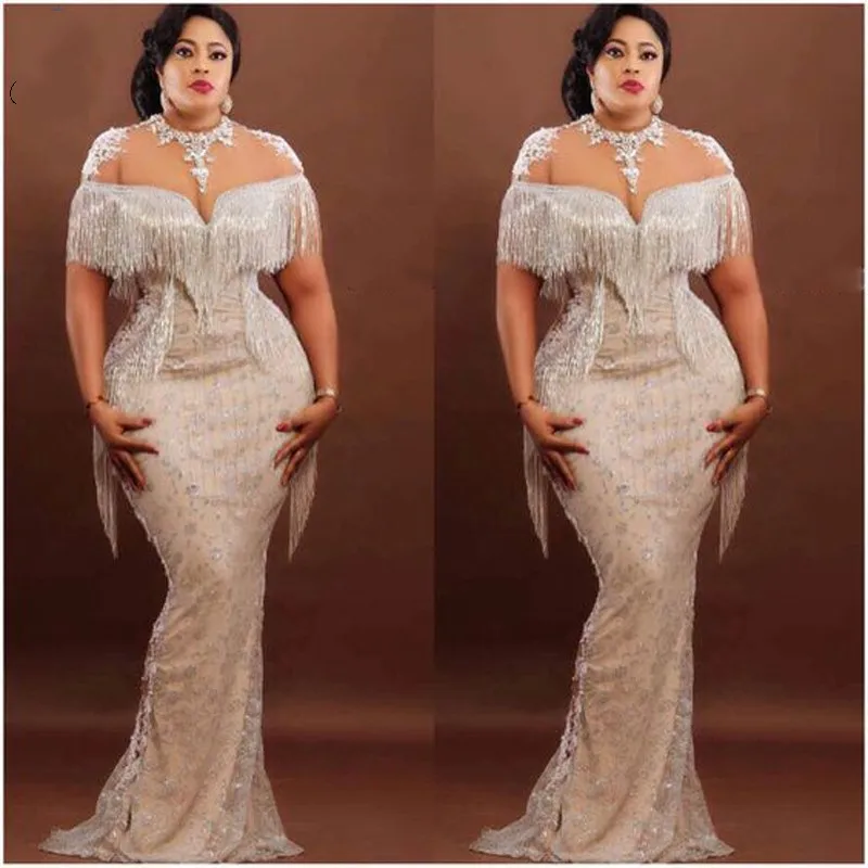 Сексуальное Африканское платье-Русалка с вырезом-лодочкой и бусинам...
