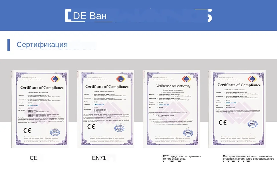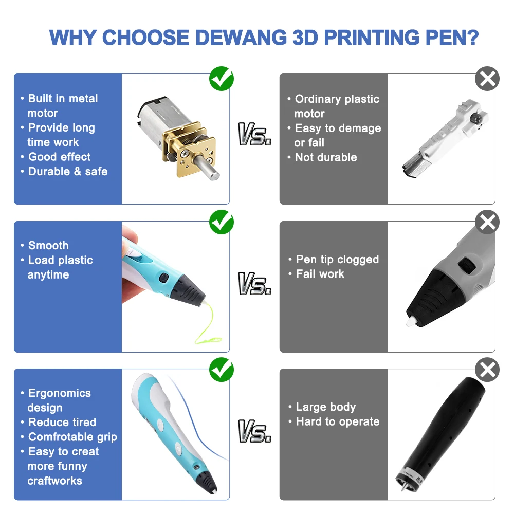 Мы разрабатываем наши 3d ручки и 3D-принтеры на отзывы тысяч конечных пользователей. Это позволяет нам включить все наиболее желаемые функции в дизайн нашей продукции. DEWANG 3d ручка имеет сертификацию CE, ROHS, FCC, EN71. DEWANG 3d продукты построены на срок.