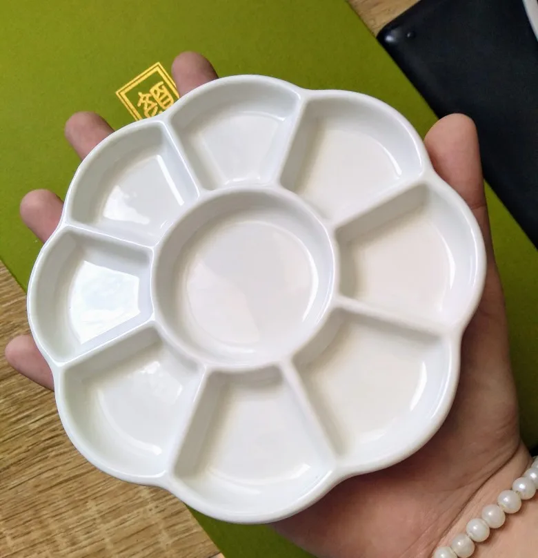 Новая круглая 9 Палитра Samina CP107 с отверстием, белая керамика для искусственной гуаши, рукоделие сделай сам, художественная живопись, легкая стирка