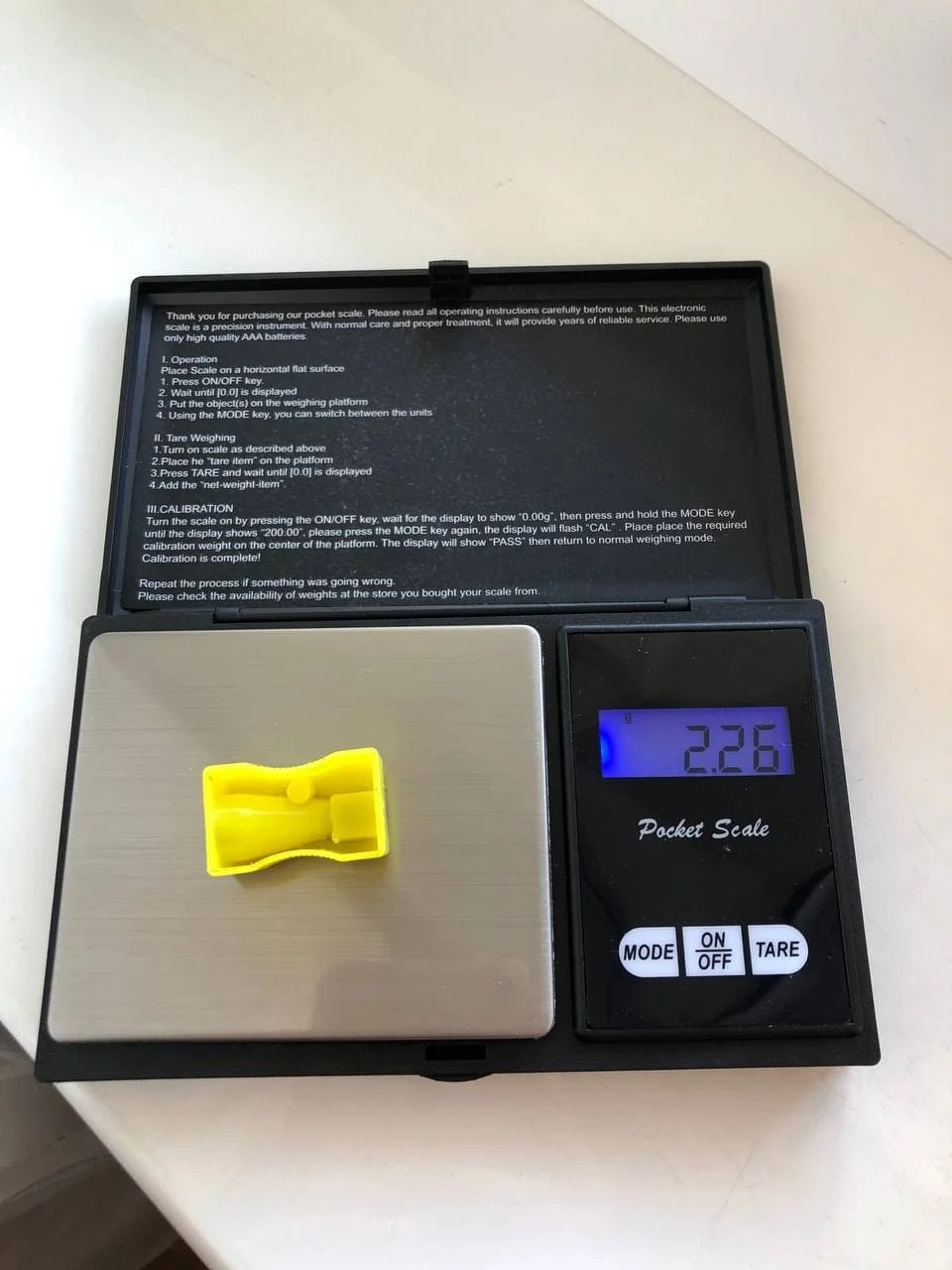Всё работает, посылка прибыла достаточно быстро, отправили тоже быстро. Работает, но после взвешивания почему-то каждый раз тара уходит в минус примерно на -0.015, т.е разброс в показаниях всё же есть небольшой, и если в разные точки на весах класть предмет, то тоже есть небольшая погрешность.