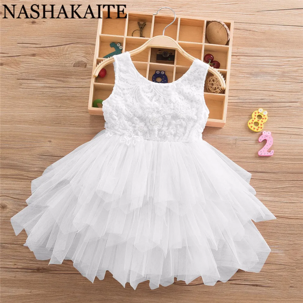 NASHAKAITEлетние платья для девочек 2020; Одежда для девочек; Белые вечерние платья принцессы с бусинами; Элегантные торжественные От 3 до 5 лет для девочек