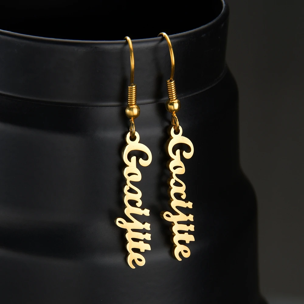 Имя:Diamon 2020 новые персонализированные Серьга на заказ для женщин из нержавеющей стали боковое имя письмо серьги вертикальные украшения для вечеринок