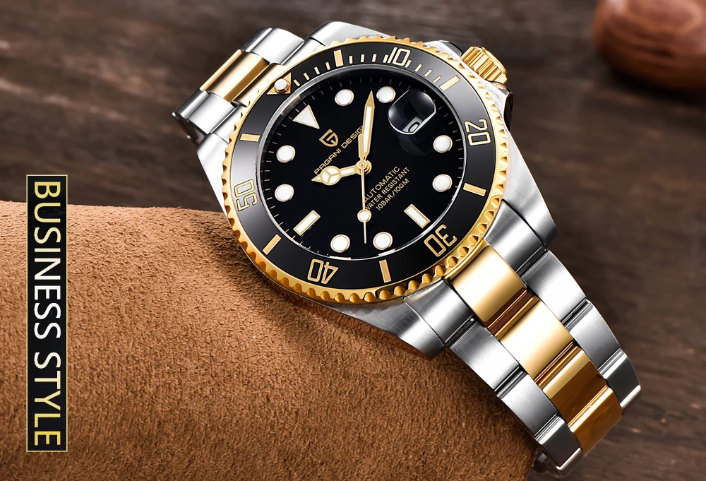 Часы наручные PAGANI Мужские механические, автоматические водонепроницаемые брендовые Роскошные спортивные, с браслетом из нержавеющей стали, черные