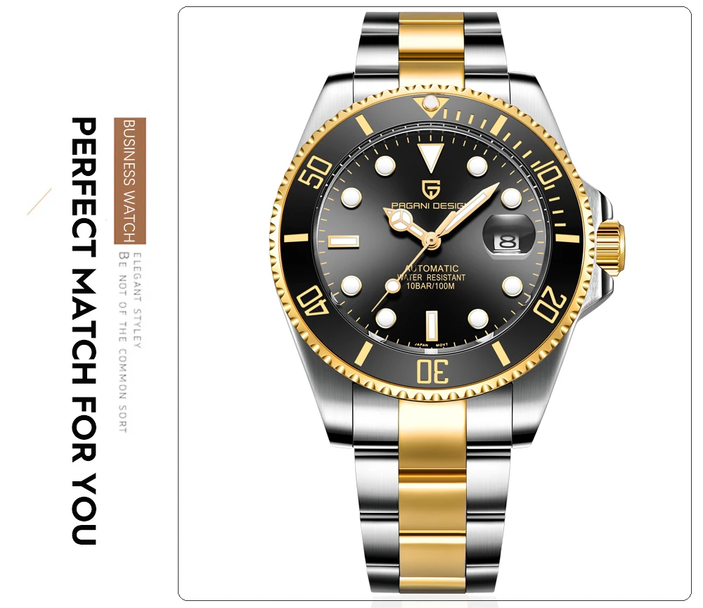 PAGANI дизайнерские брендовые Роскошные мужские часы Автоматические черные часы мужские водонепроницаемые деловые спортивные механические наручные часы из нержавеющей стали