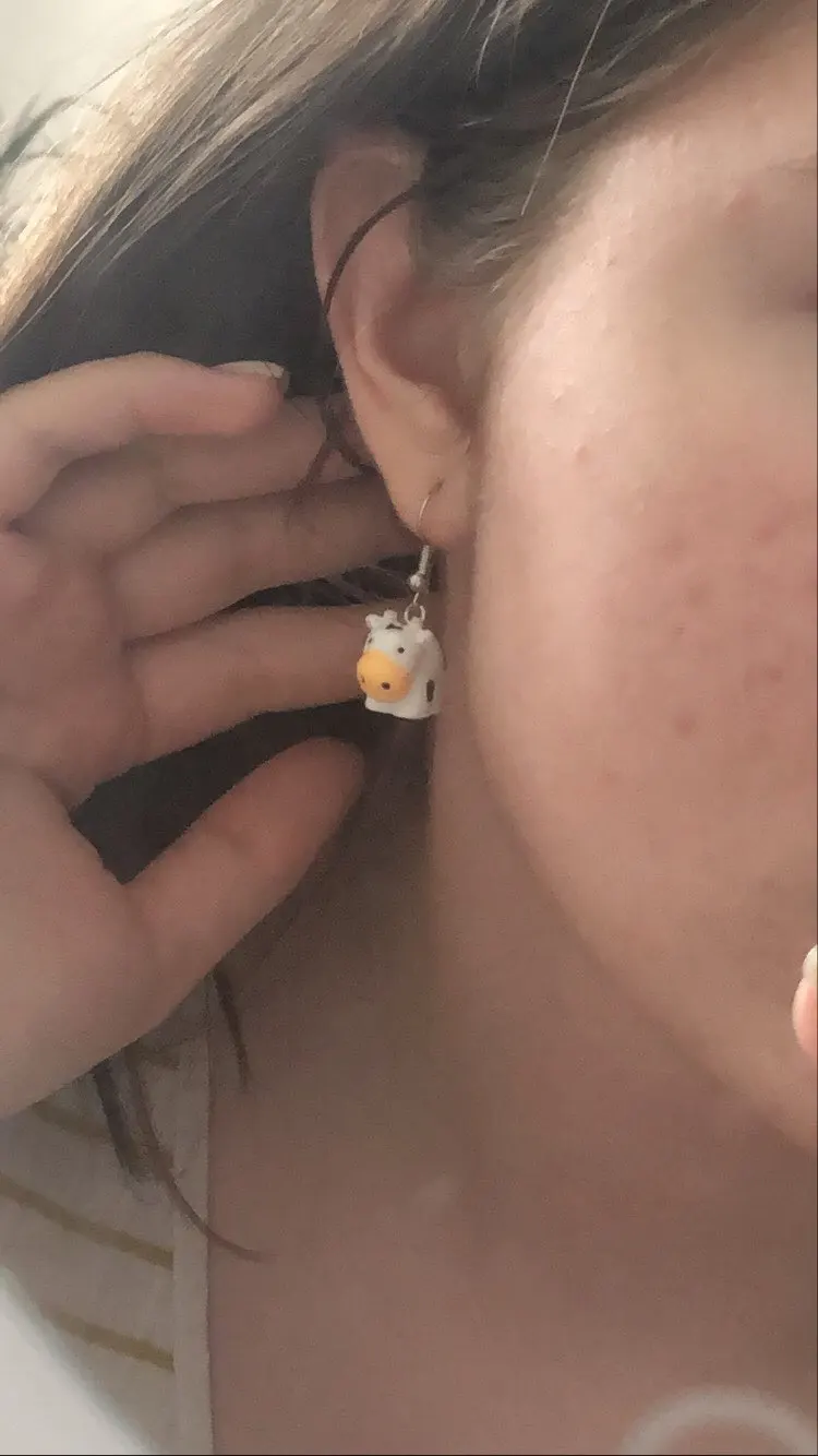 Отличные серьги. Думала будут больше но и так нормально). Правда одна коровка смотрит не в ту сторону а так отлично. Советую) До Питера дошли быстро