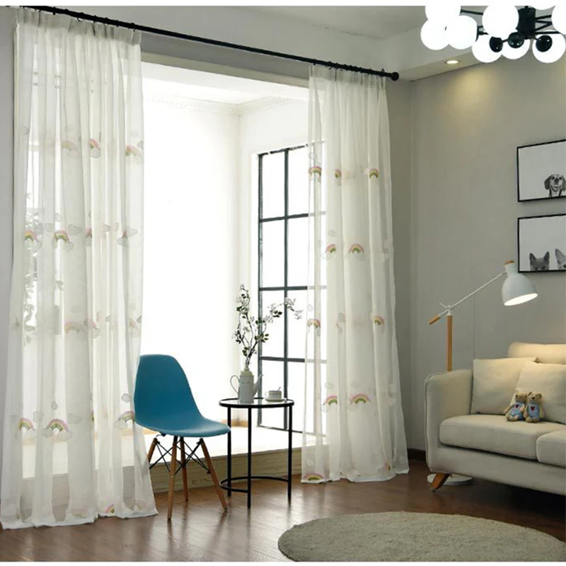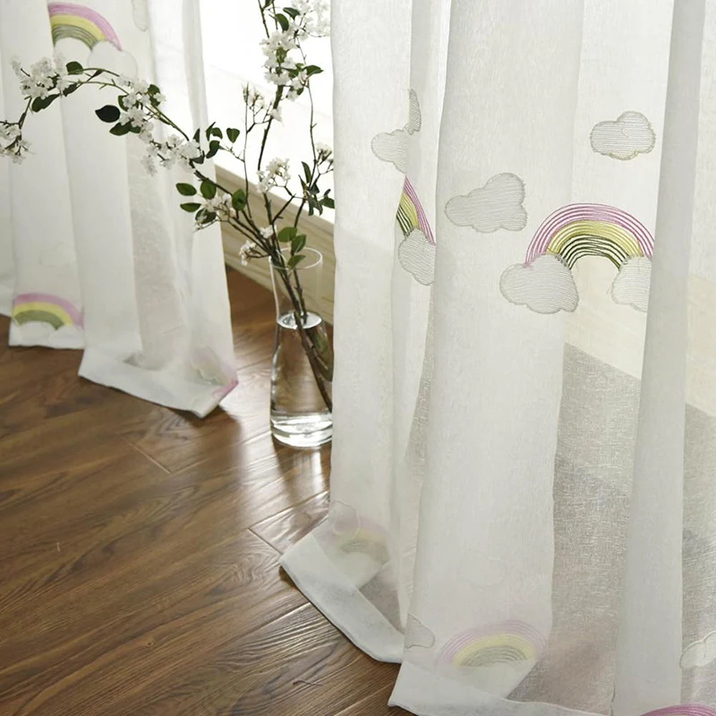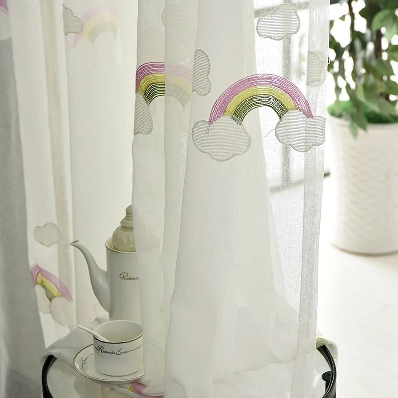 Мультяшные вышитые Радужные облака тюлевые детские шторы для детской спальни окна кухни шторы для гостиной роликовые шторы