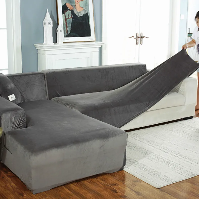 Бархатный плюшевый l-образный диван, эластичная мебель, диван, чехол для гостиной, растягивающийся чехол для дивана, чехол с наволочкой