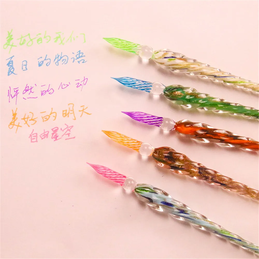 Ручка стеклянная перьевая ручка с цветочным 3D рисунком и чехлом для хранения