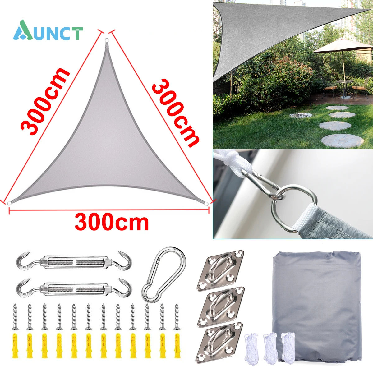 Aunct 3x3x3 м Треугольники серый 300D тенты открытый Водонепроницаемый солнцезащитным козырьком нейлон Оксфорд ткань козырек от солнца беседка сад плавательный Пеший Туризм двор