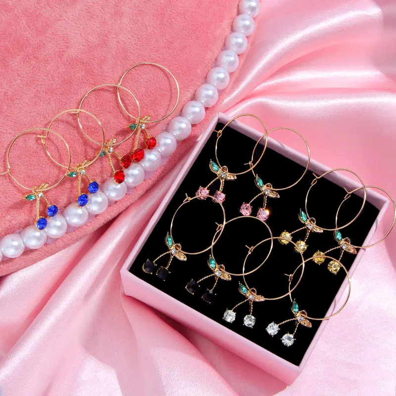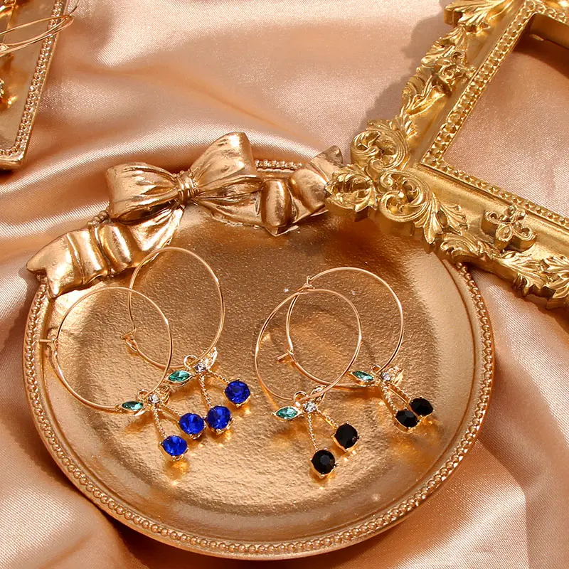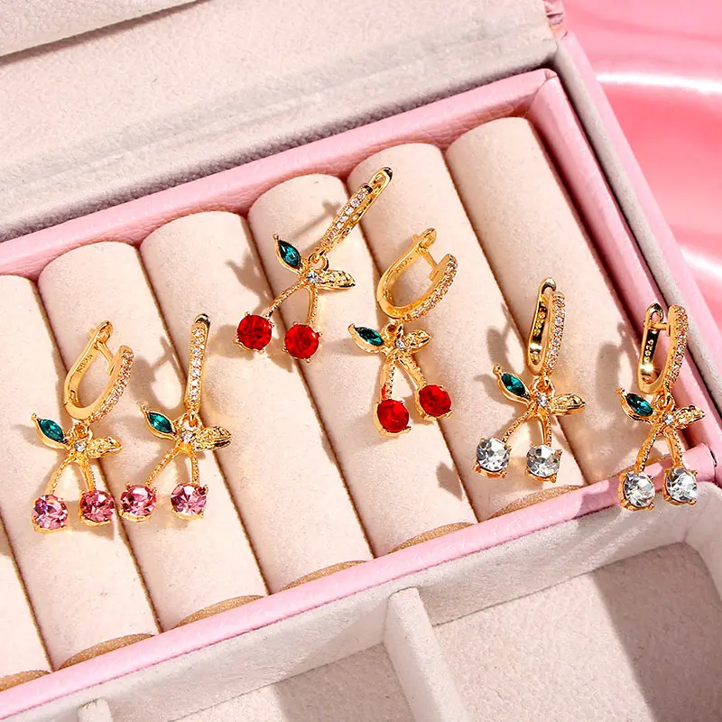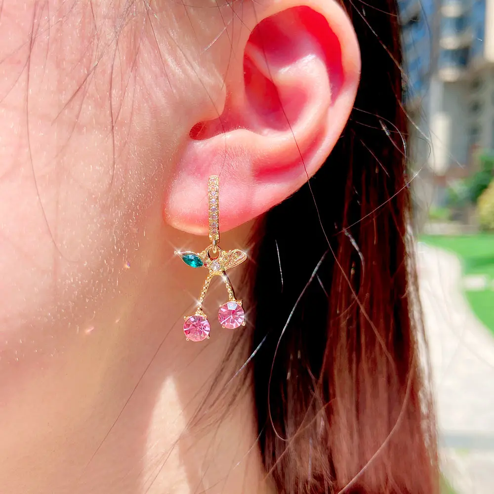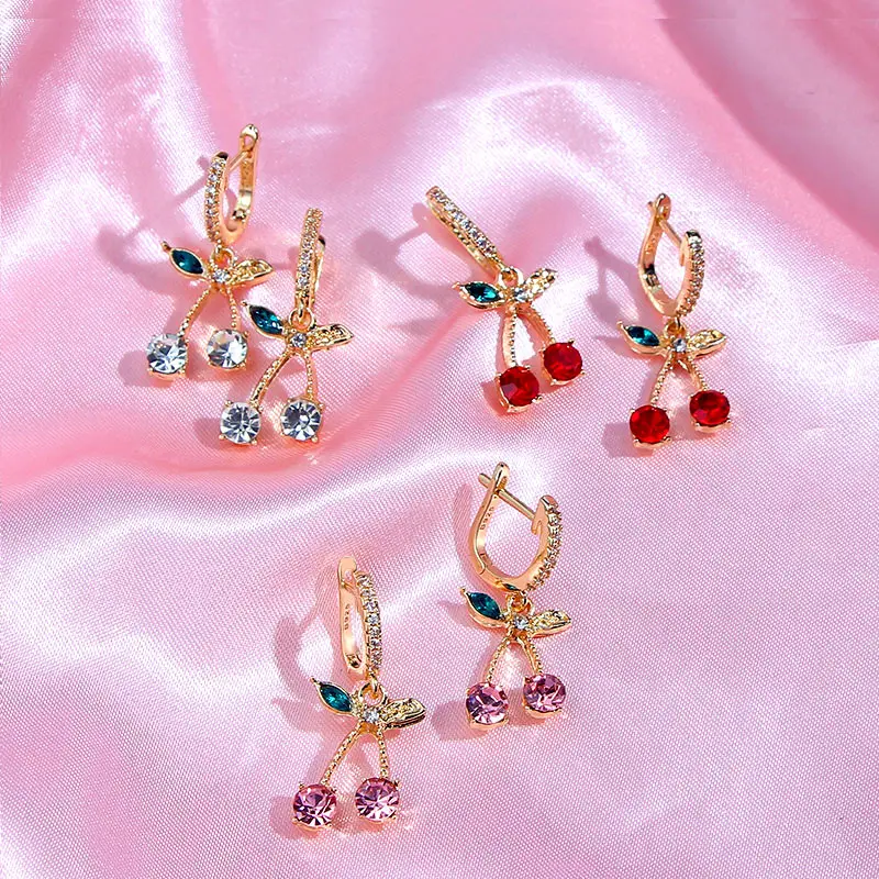 BYNOUCK Модные Новые разноцветные висячие серьги с кристаллами вишни для женщин и девушек золотого цвета фрукты висячие серьги 2020 Модная бижутерия
