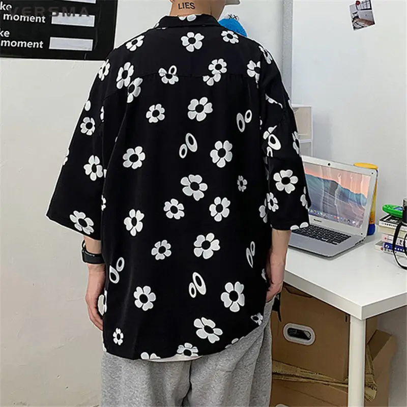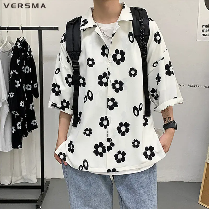 Винтажная гавайская рубашка VERSMA в Корейском стиле Харадзюку с цветочным принтом для мужчин и женщин, летние топы для мальчиков и девочек, забавная гавайская рубашка, большие размеры