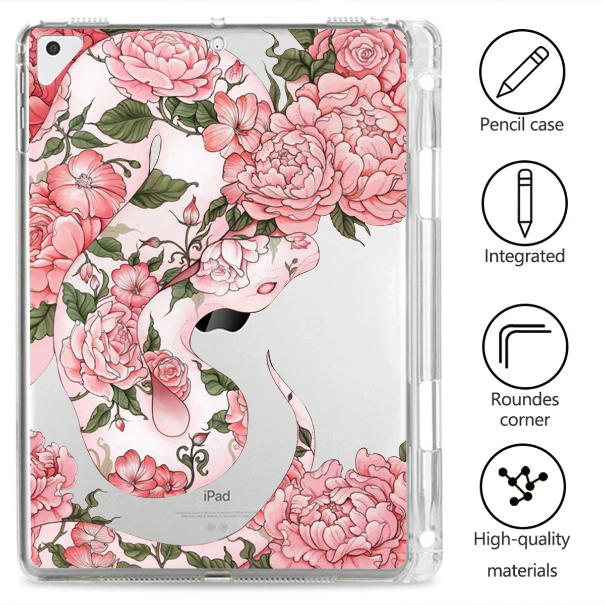 Змеиный цветок для iPad Air 1 2, чехол для планшета со слотом для ручки, прозрачный мягкий чехол для iPad 7 поколения, чехол Pro 11 2020 Mini 5 Funda