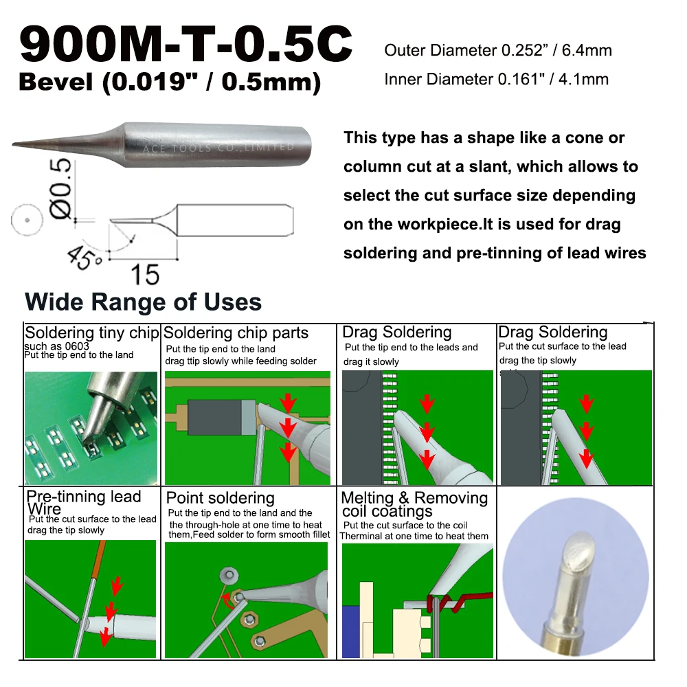Наконечник паяльника 900m-t-0. 5C, скос 0,5 мм для Hakko 936 907, флейта Milwaukee, 64-053 Yihua 936 X-Tronics 3020, железный наконечник