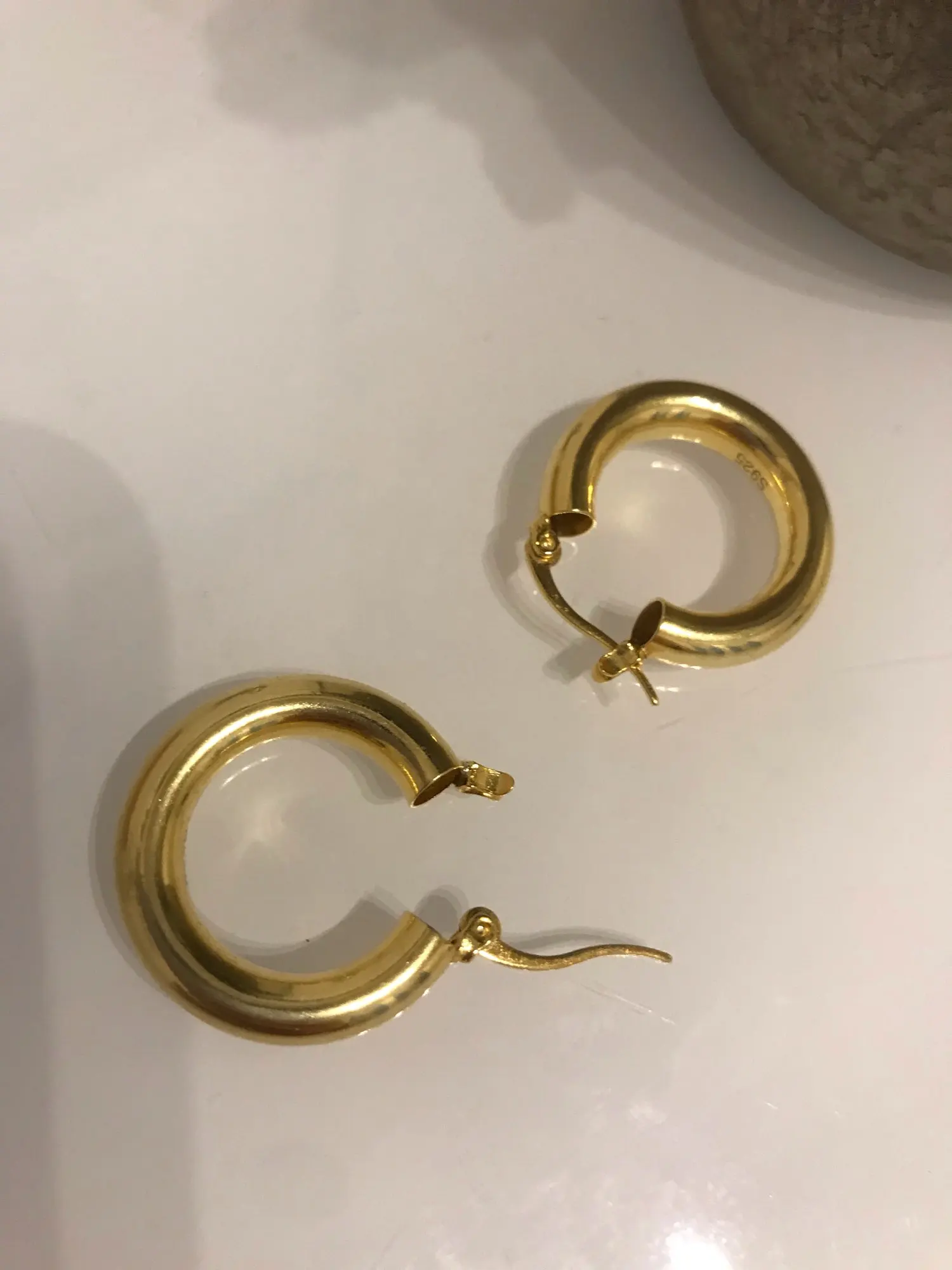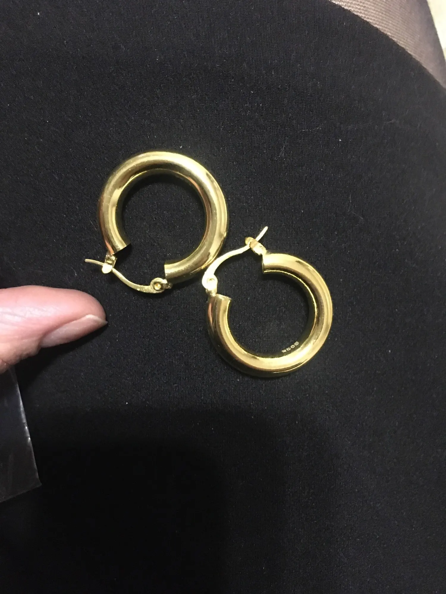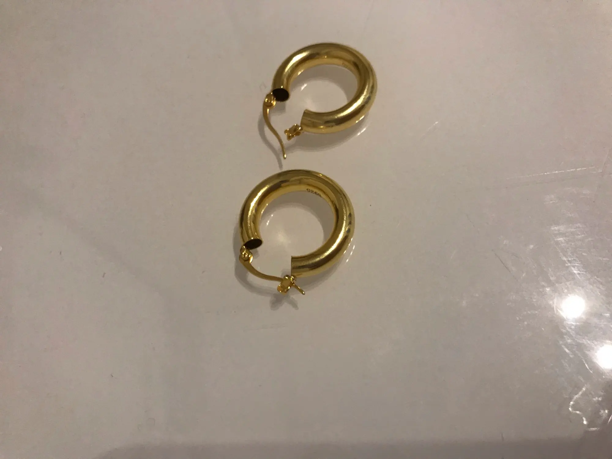 Look very dull compared to the picture, and the earrings are completely hollow, something I was expecting to be sure, but I would've hoped that portion would've been sealed up as you can look straight into the loop. Even do, they're still a nice design, they just won't be used in the way I had hoped. Seller sent items very quickly.