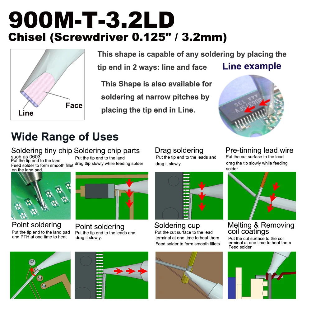 Наконечник для паяльника 900m-t-3. 2ld, зубило 3,2 мм для Hakko 936 907, флейта Milwaukee, 64-053 Yihua 936 X-Tronics 3020, железный наконечник