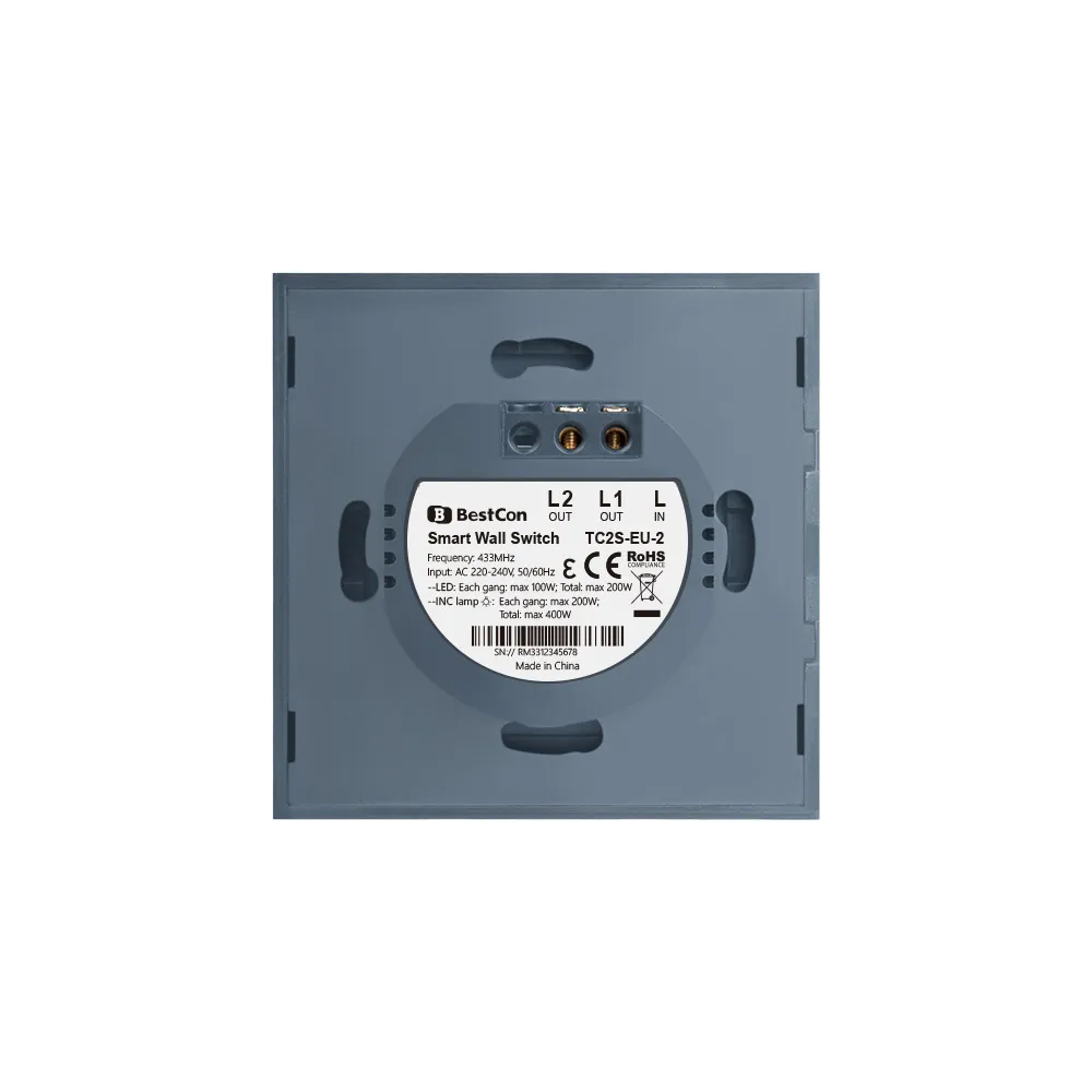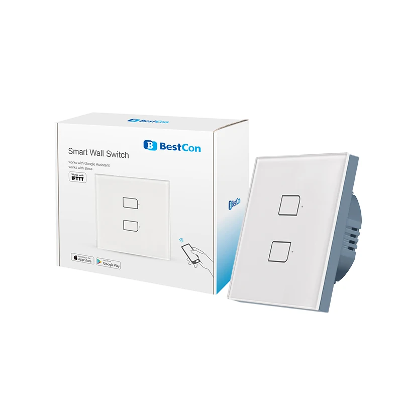 Умный настенный сенсорный высветильник ель Bestcon TC2S-EU RF433 работает с Alexa, Google home, IFTTT