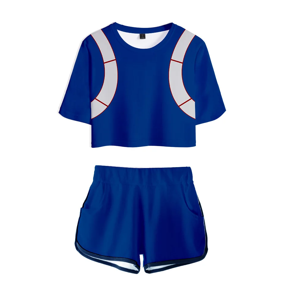 Женский костюм для косплея героев аниме Моя геройская Академия, комплект для девочек-подростков с 3D принтом, укороченный короткий рукав, шорты, рубашка для Академии