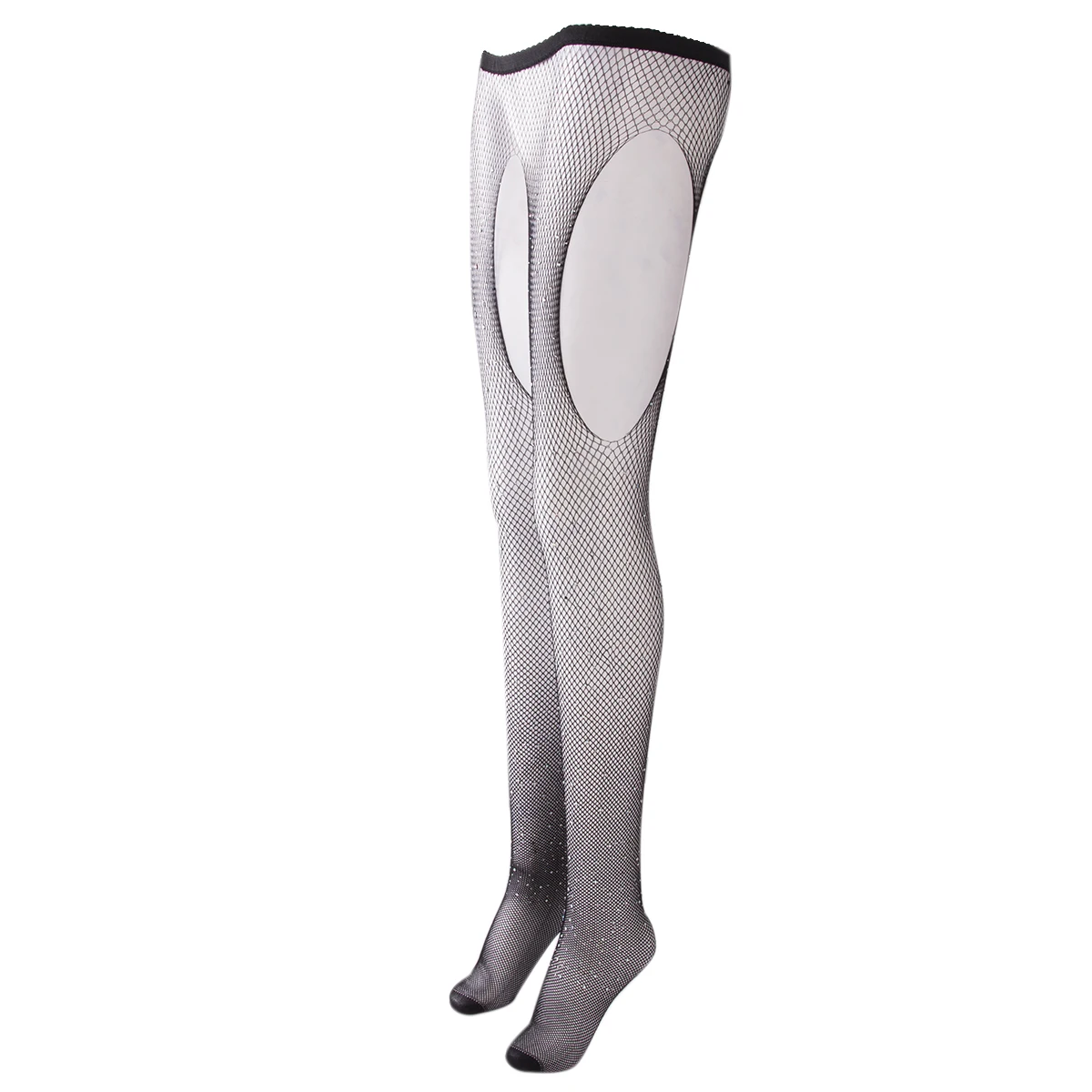 Для женщин высокой талией ажурные колготки сексуальные колготки блестящие стразы, открытая промежность, обтягивают бедра высокие эластичные черные чулки в сеточку