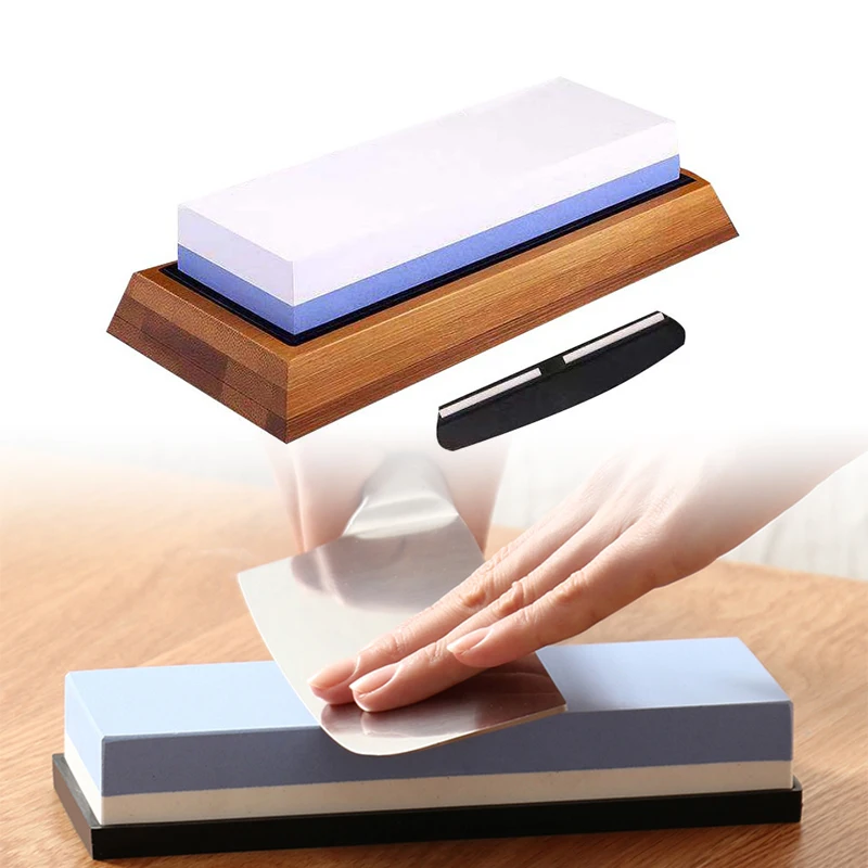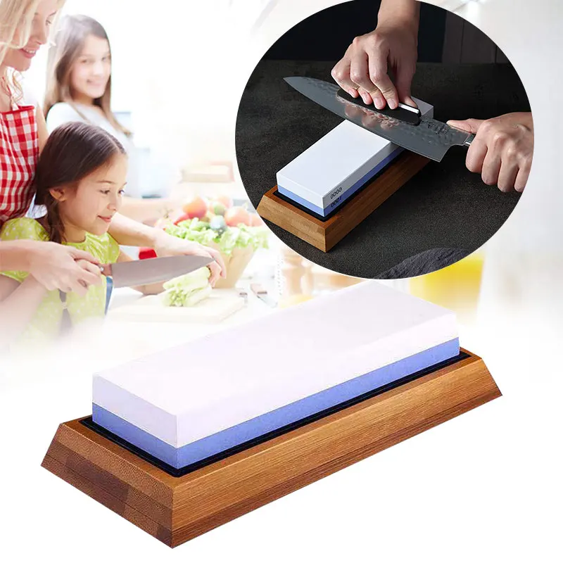 Точильный камень для ножей, двухсторонний точильный камень, Профессиональный кухонный держатель, система с деревянным держателем, инструмент 2-в-1, зернистость 800300060008000