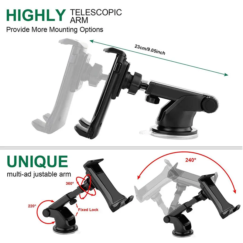 4,7-12 дюймовый планшетный ПК Универсальный автомобильный держатель на присоске на лобовое стекло Подставка для iPad iPhone X 12 11 вращающийся свободный моющийся Базовый диск