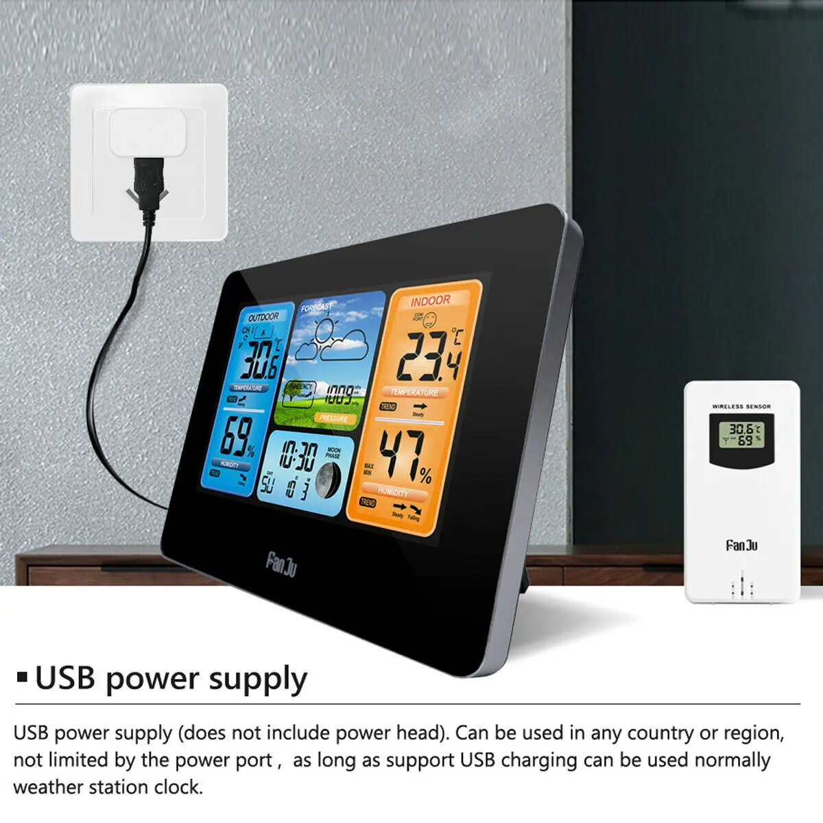 Цифровая метеостанция, беспроводной гигрометр с термометром и будильником, светильник, измеритель температуры в помещении и на улице с ЖК-дисплеем