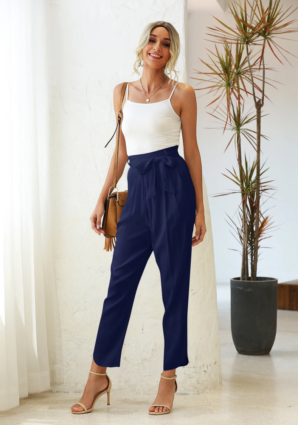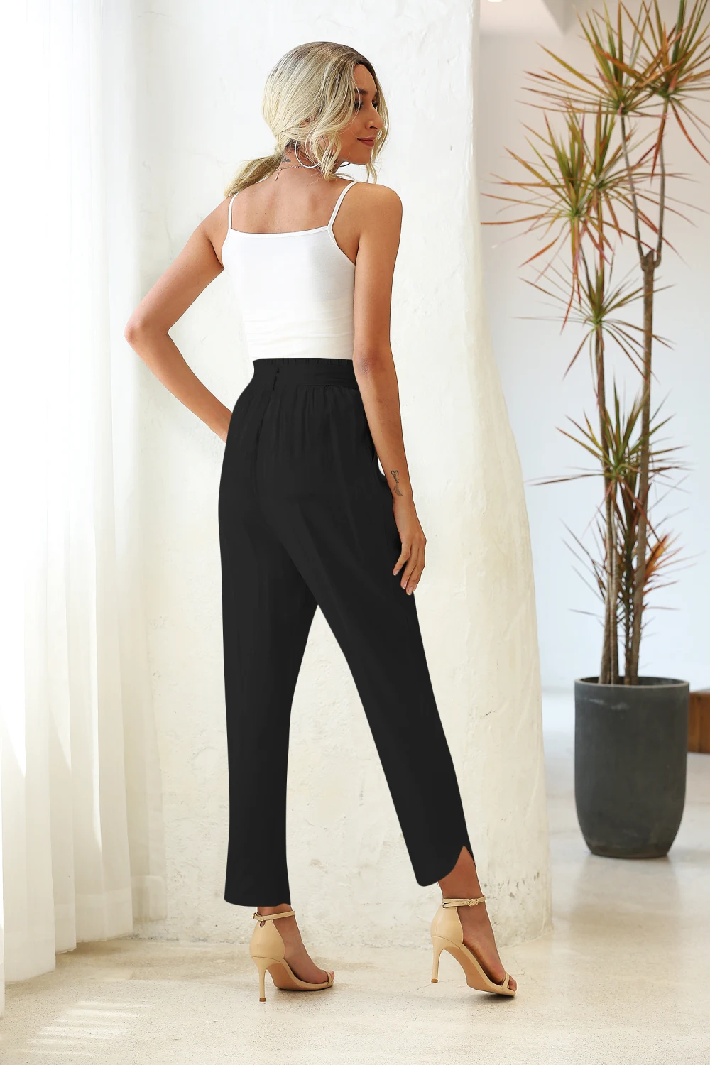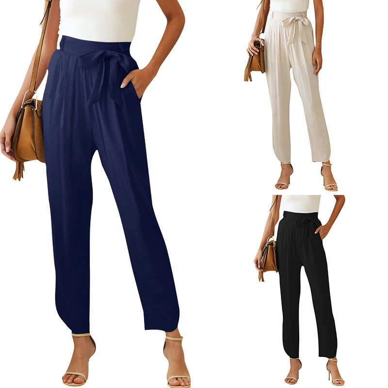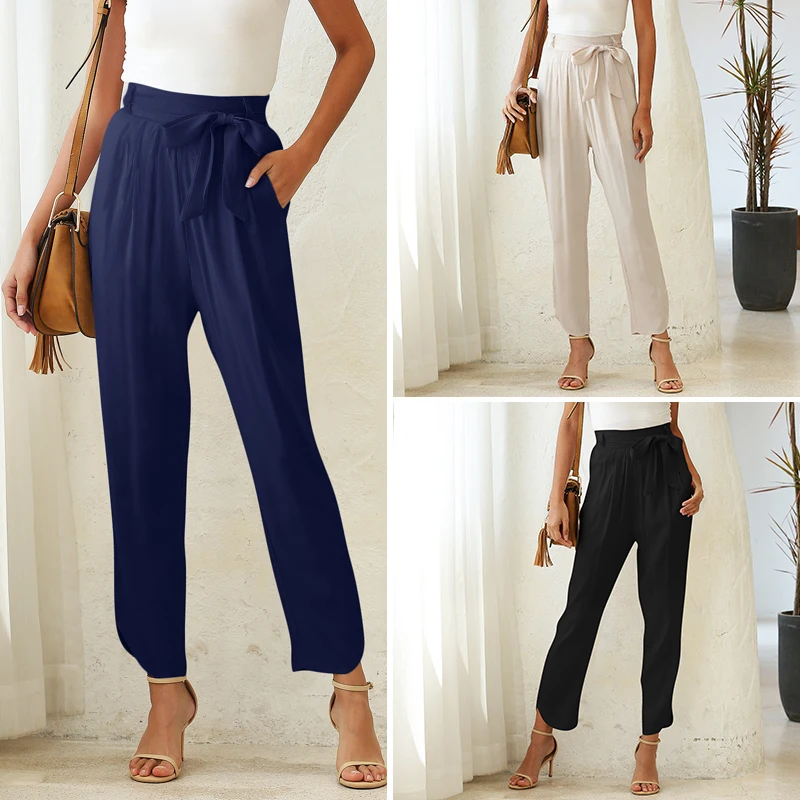 Женские брюки с высокой талией, однотонные свободные офисные Топы с бантом, большие размеры, лето 2020