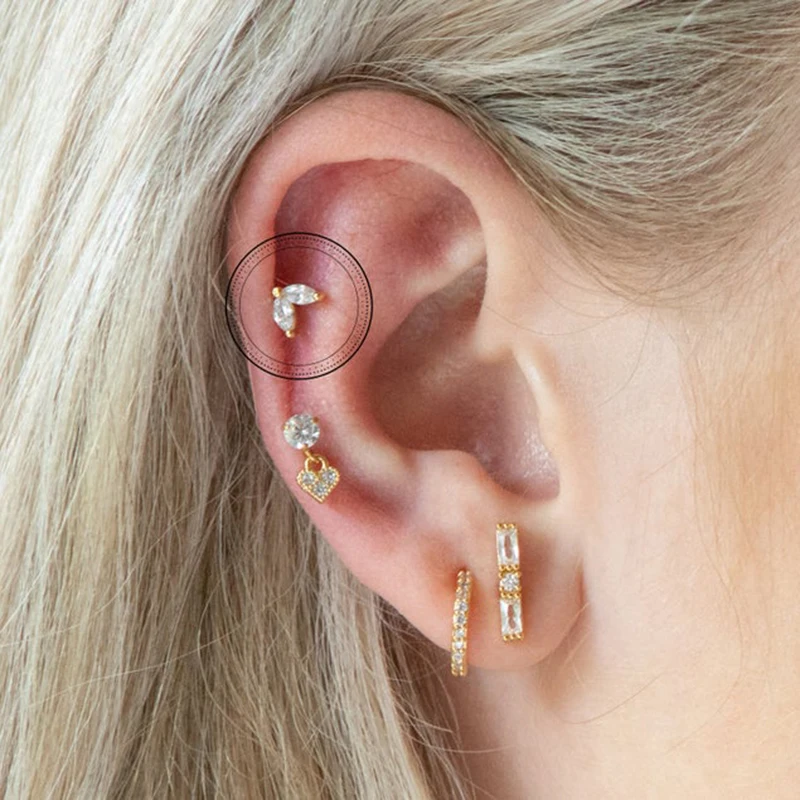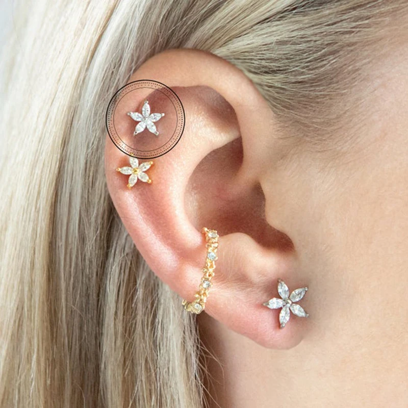 CANNER 1 пара 925 Стерлинговое Серебро заячьи ушки цветок циркон маленькие серьги гвоздики для женщин золотой цвет Шпильки для ушей серьги в стиле пирсинга