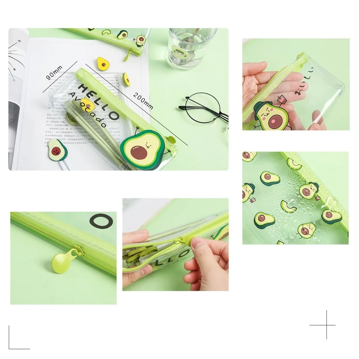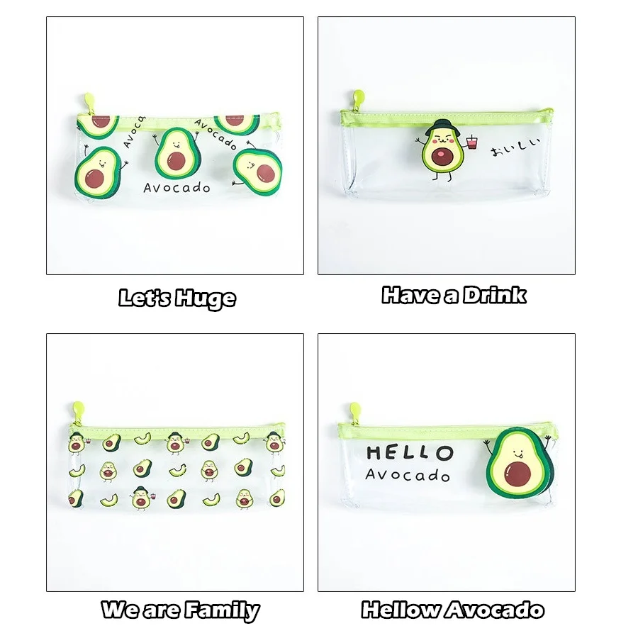 Прозрачный пенал для ручек и карандашей, с авокадо