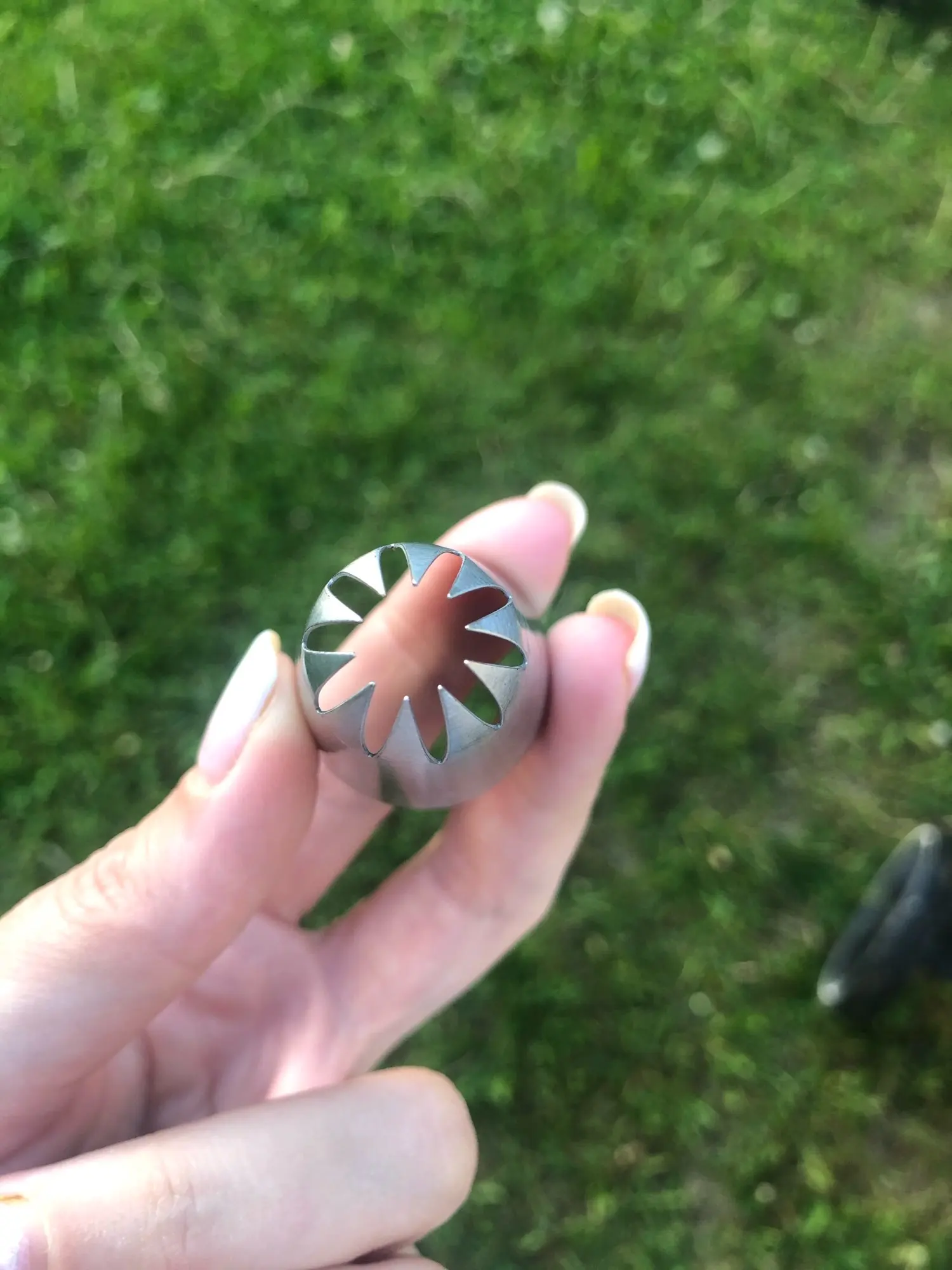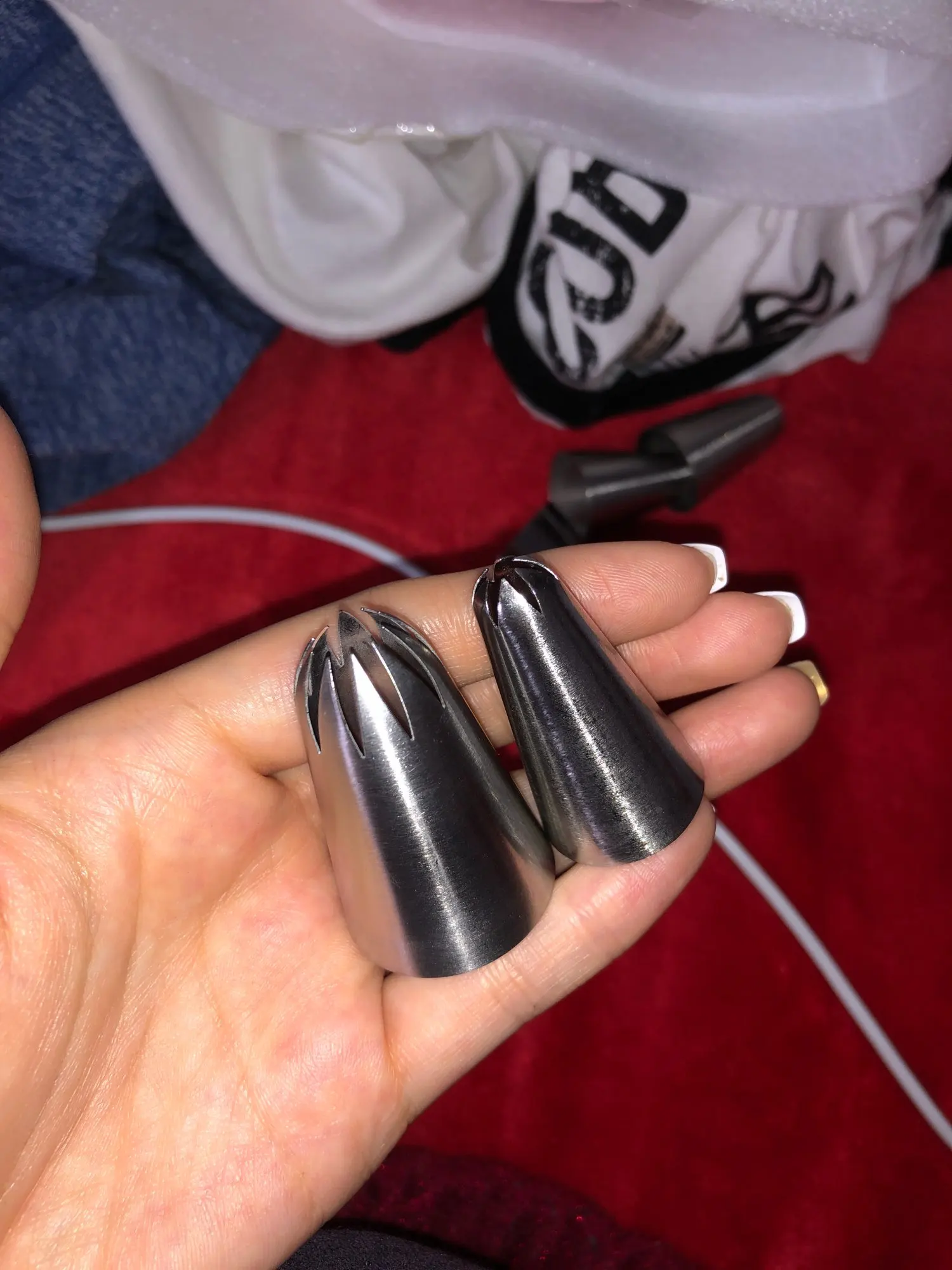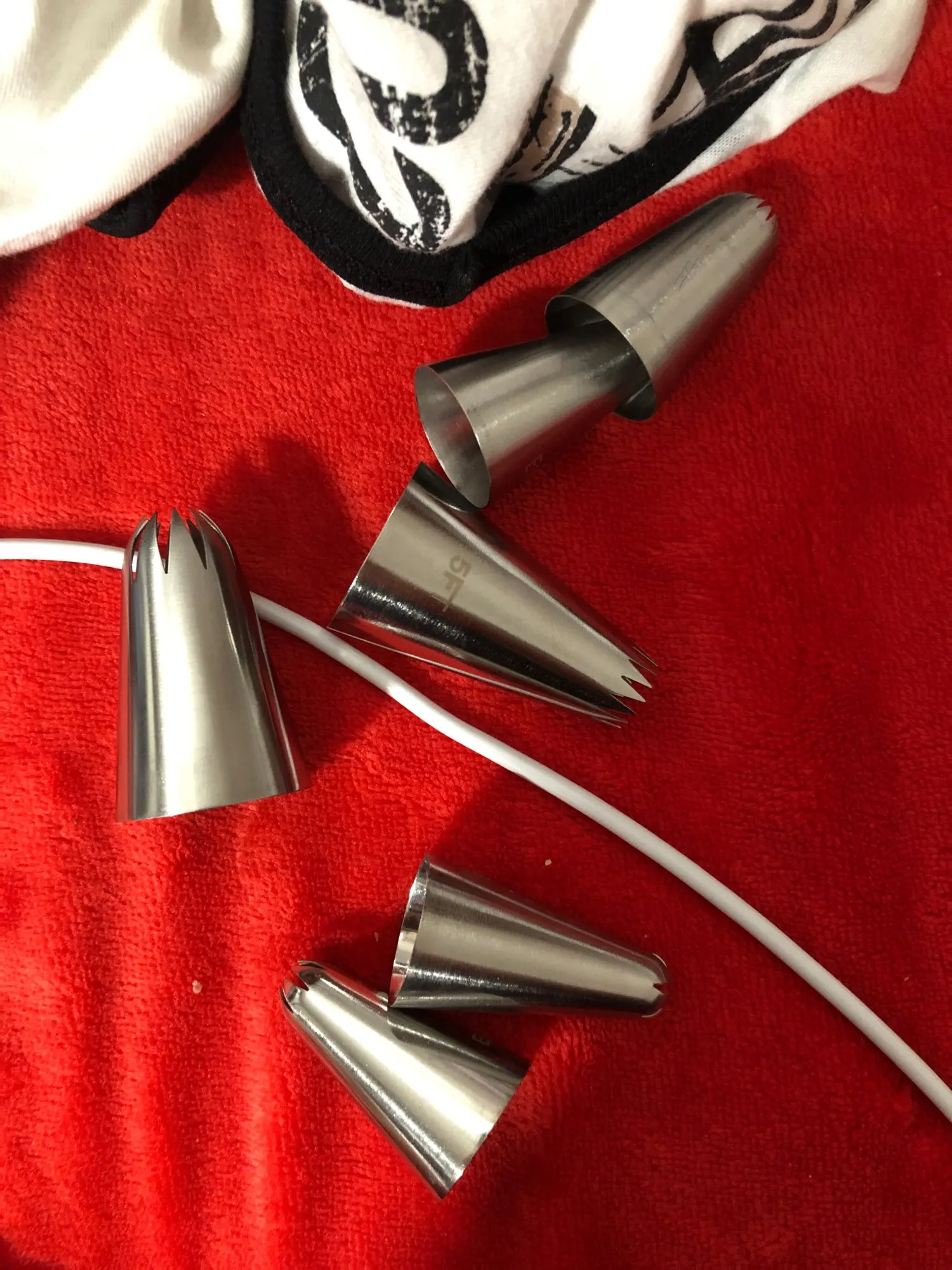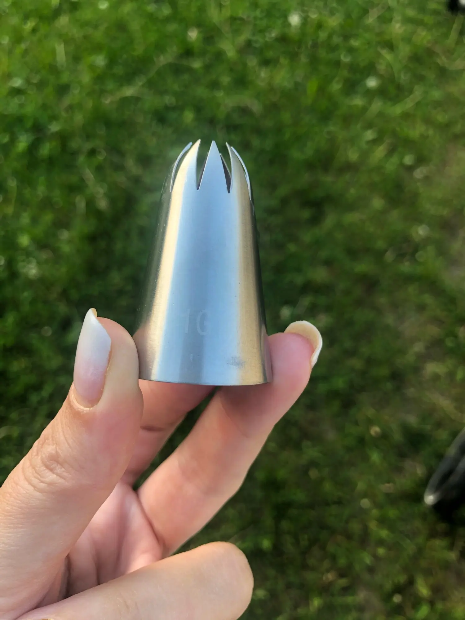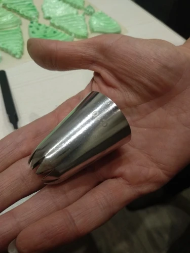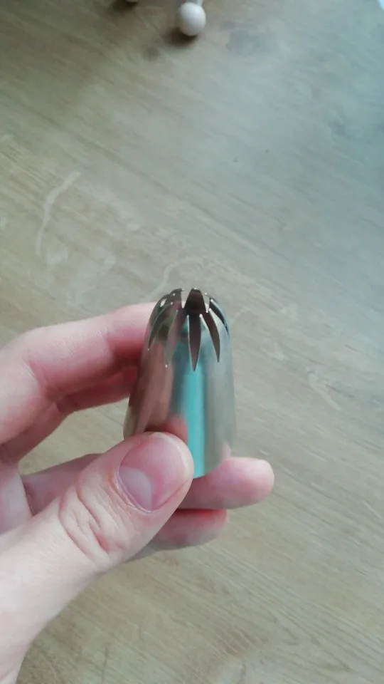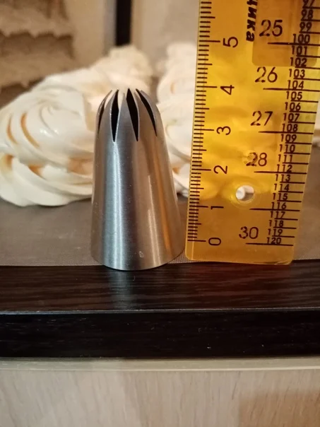 Ничем не уступает качеством от насадок в кондитерских магазинах, у меня есть аналогичная из кондитерского магазина в моем городе - купила за 150 рублей, видимых отличий- нет, даже толщина метала такая же, хотя, были переживания, что прийдет тоненькая, так сказать хиленькая, но нет, все на высоте! Ещё не использовала при отсадке крема, но, уверенна, не подведёт.