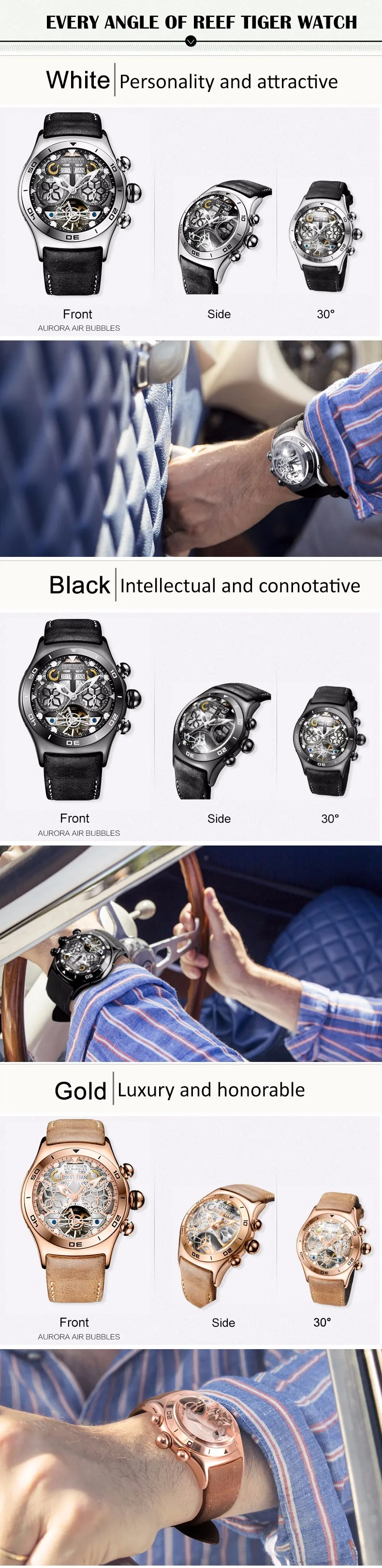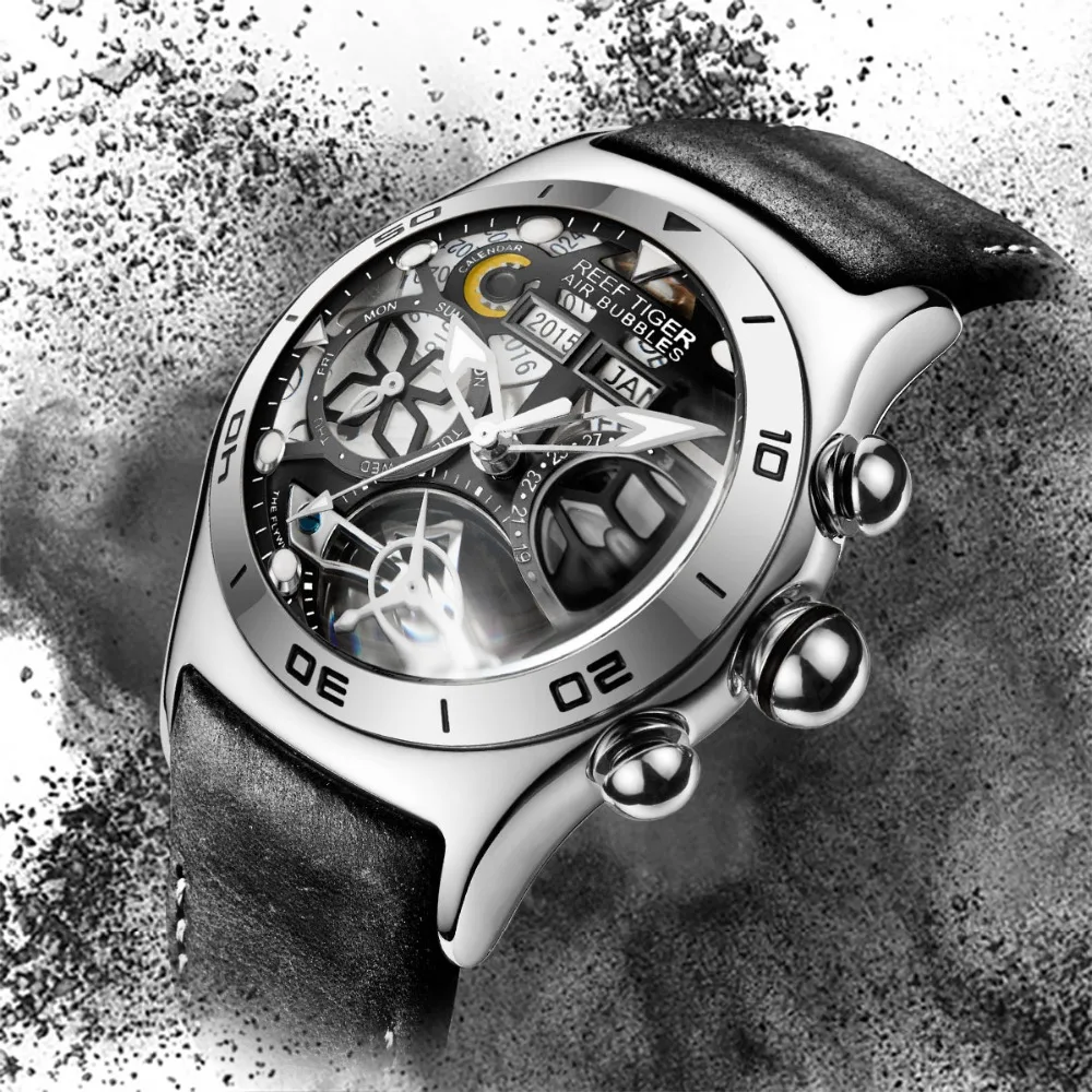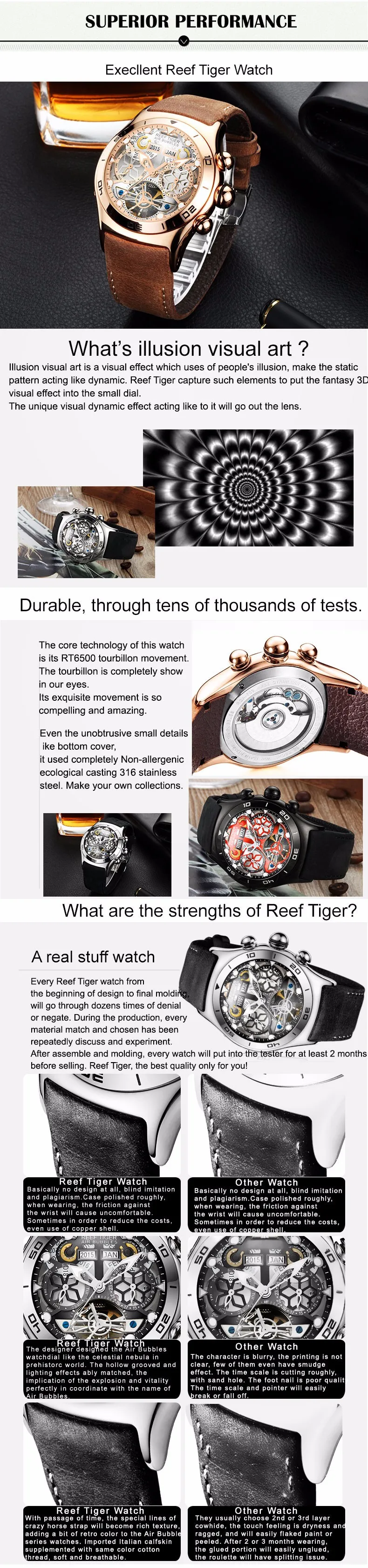 Мужские спортивные механические часы Reef TigerRT, водонепроницаемые часы с автоматической датой, 2021 м, роскошные часы с турбийоном, 100