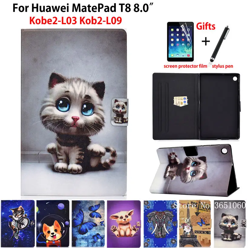 Милый чехол с узором для Huawei MatePad T8 8,0, чехол Kobe2-L03 KOB2-L09, чехол для планшета, силиконовый чехол из искусственной кожи + подарок