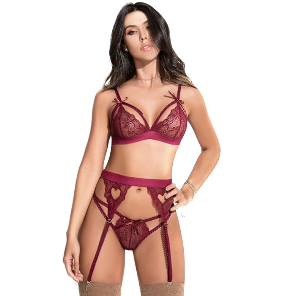 Комплект женского кружевного нижнего белья, стринги, 3 шт., сексуальное порно белье