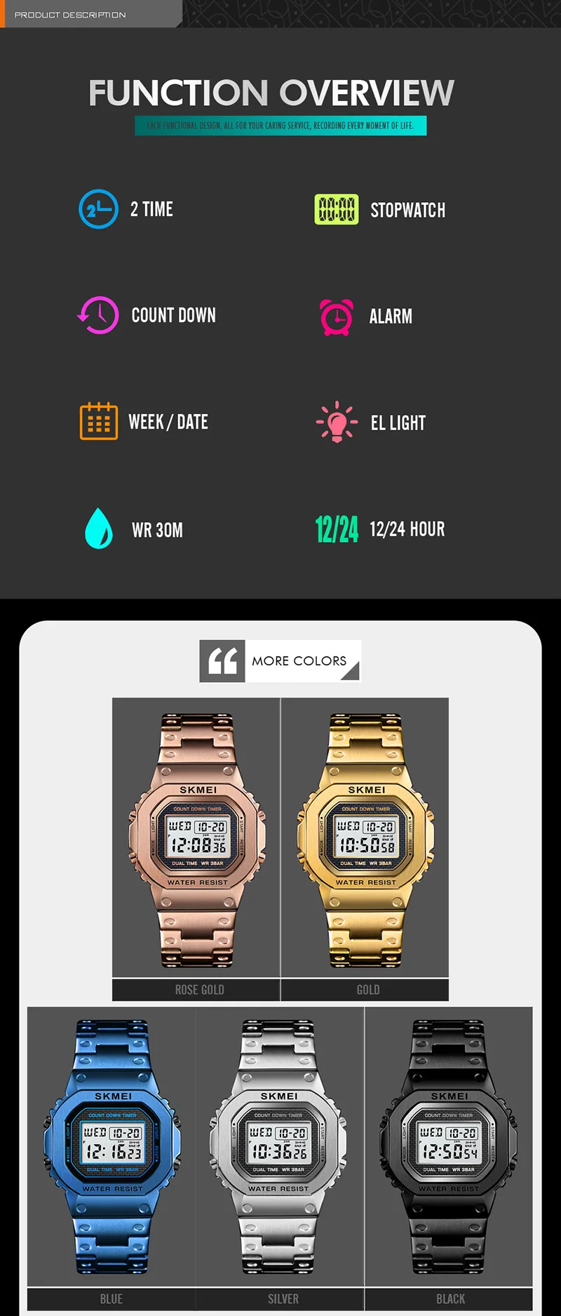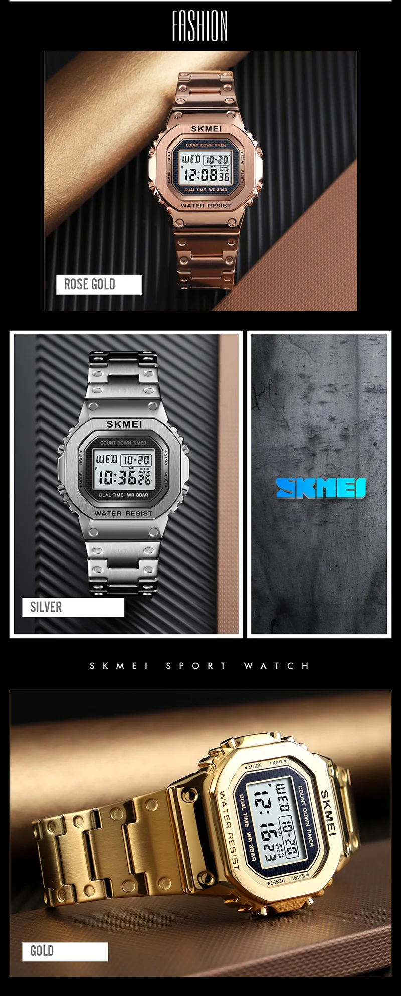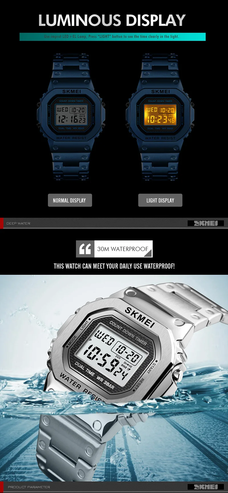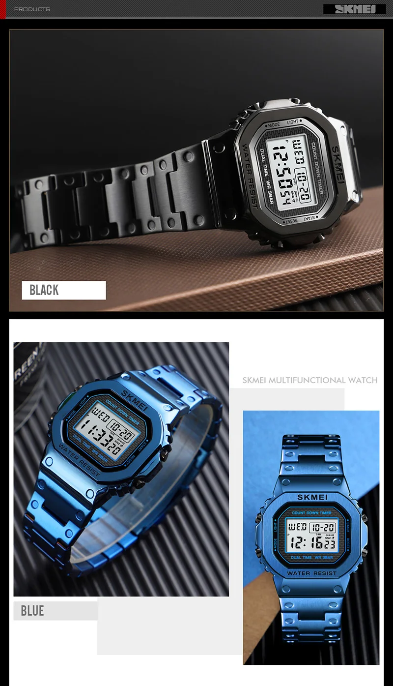 Часы наручные SKMEI мужские с хронографом, цифровые модные уличные спортивные водонепроницаемые, с будильником