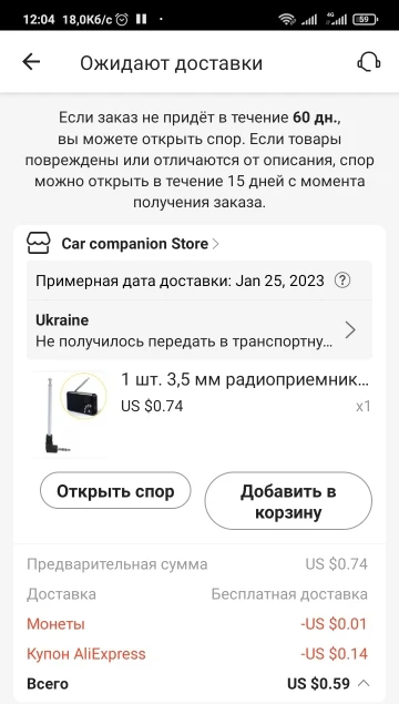 Страна: UA Доставка: Cainiao Super Economy 09.12.2022