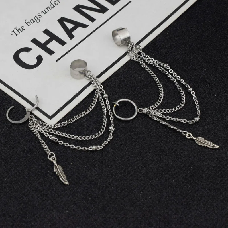 Серьги-цепочки из нержавеющей стали в стиле знаменитостей для мужчин и женщин, корейские одиночные серьги с перьями и листьями, оптовая продажа