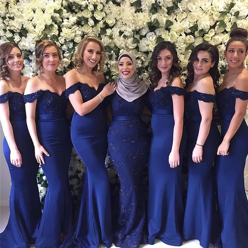 Темно-синее платье подружки невесты с открытыми плечами, шифоновая атласная аппликация с бусинами для сада, для гостей свадьвечерние, для горничной
