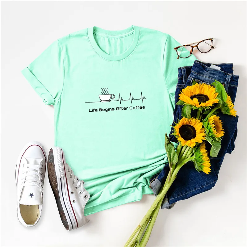 Футболка женская оверсайз, 100% хлопок, с принтом кофе