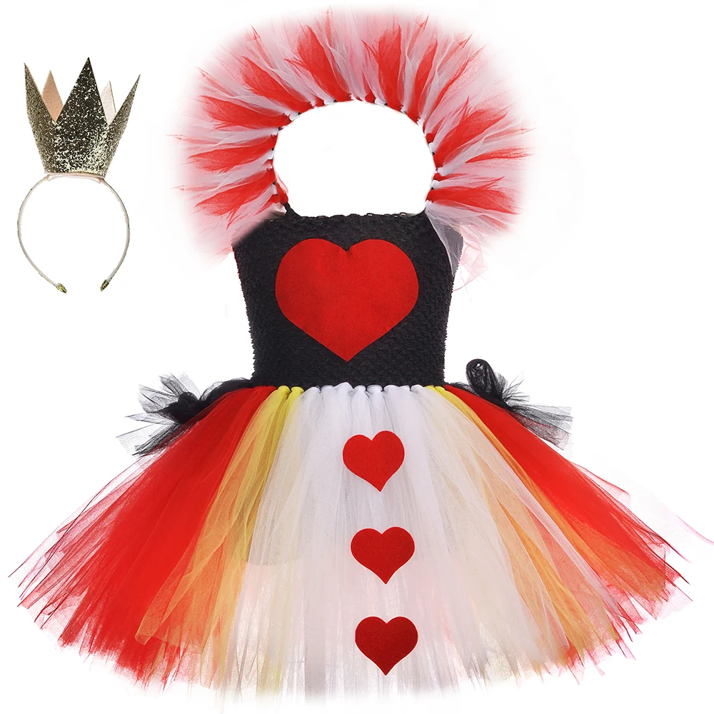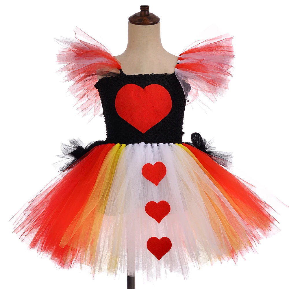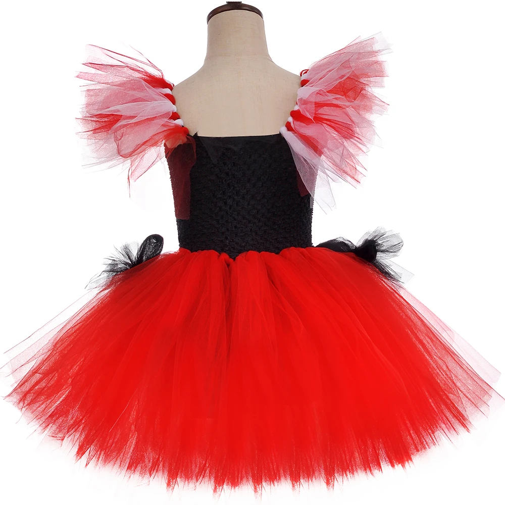 Черно-красной королевы; Маскарадные костюмы с принтом в виде сердца и Детские платья с юбкой-пачкой для девочек, с воротником-стойкой для костюмированной вечеринки, костюм для вечеринки на Хэллоуин; Карнавальный костюм для детей вечерние платья