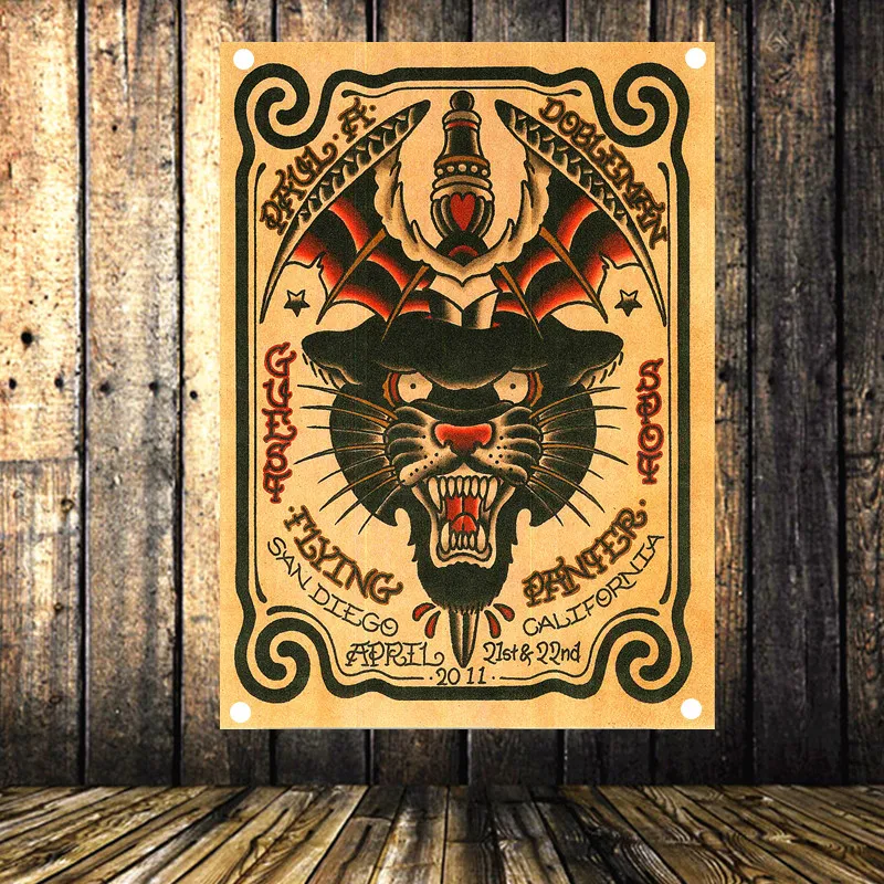 Подвесной флаг с татуировкой для старой школы, водонепроницаемый тканевый баннер с 4 отверстиями для пожилых, гобелен, настенная наклейка, украшение для бара, кафе, дома
