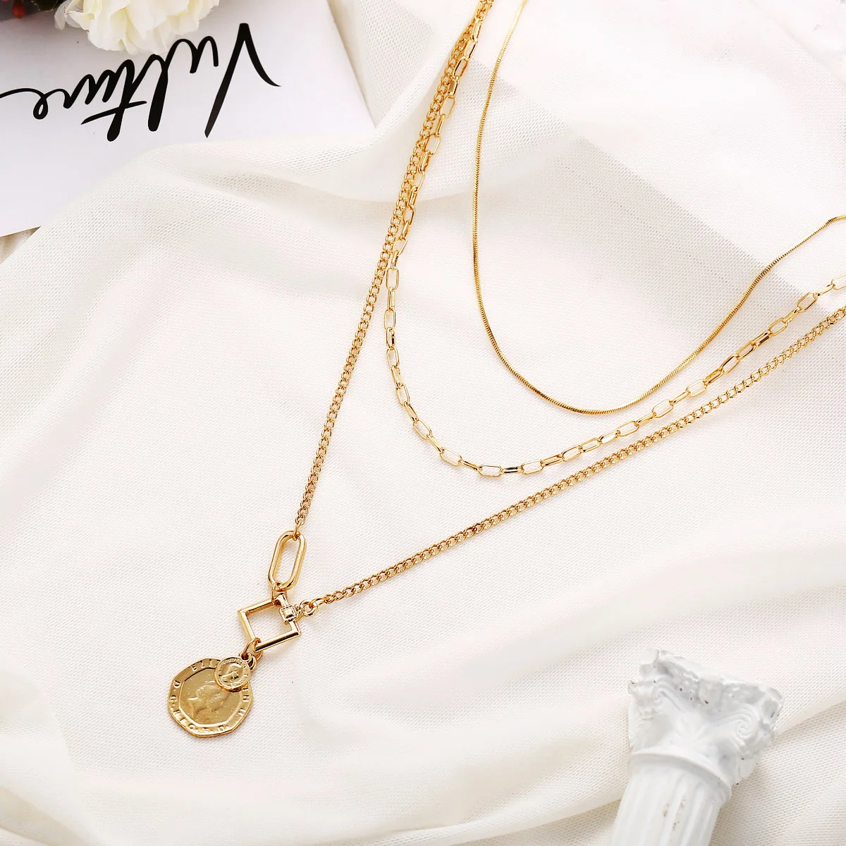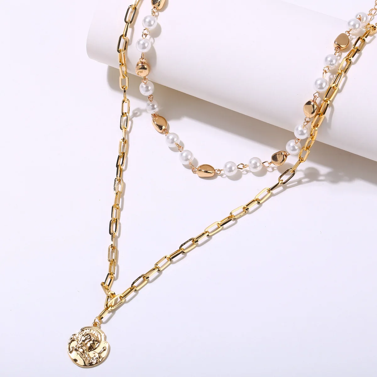 KSRA винтажная Золотая монета с портретом жемчужной бабочки ожерелье для женщин Мода Богемия толстая цепь колье ожерелья ювелирные изделия 2020 Новинка