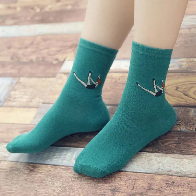 Хлопковые дышащие женские носки в спортивном стиле с рисунком