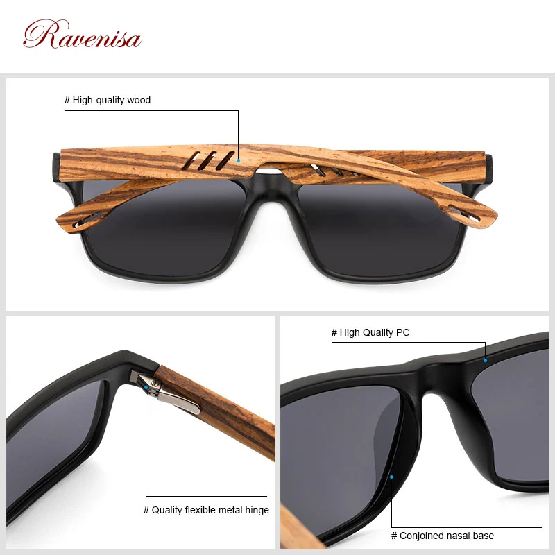 Деревянные солнцезащитные очки Ravenisa для мужчин поляризационные ...