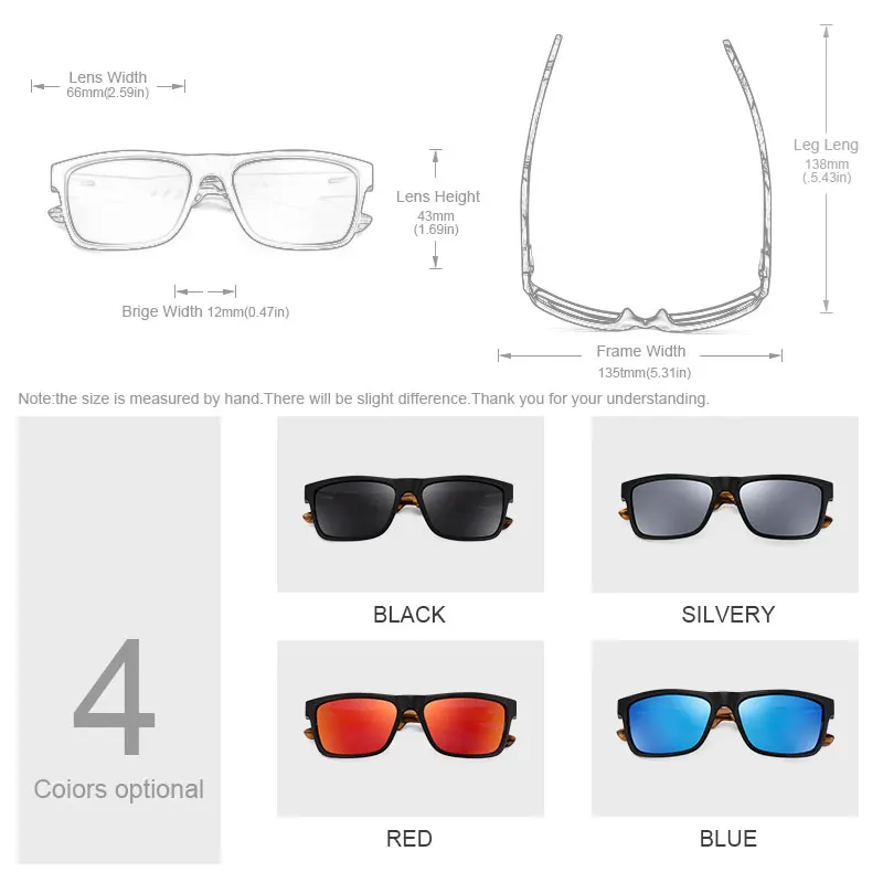 Мужские деревянные солнцезащитные очки Ravenisa, поляризационные квадратные синие солнцезащитные очки с УФ-защитой, мужские солнцезащитные очки