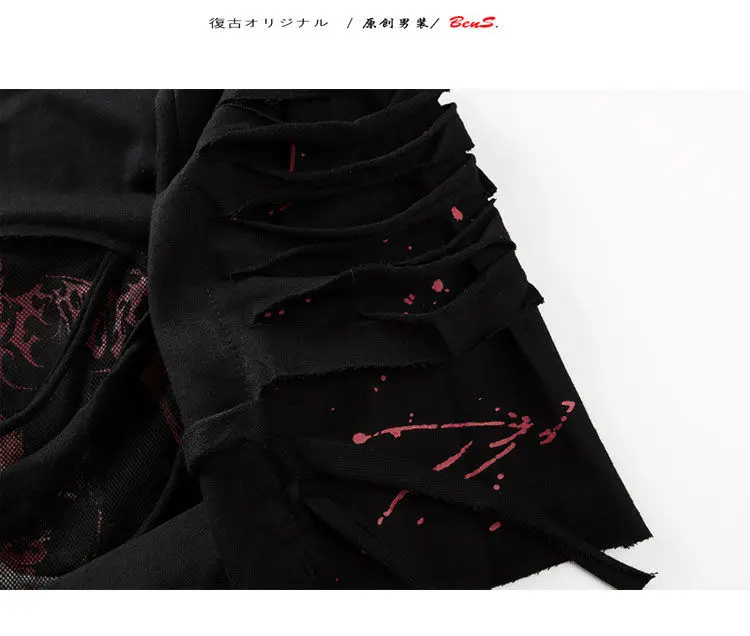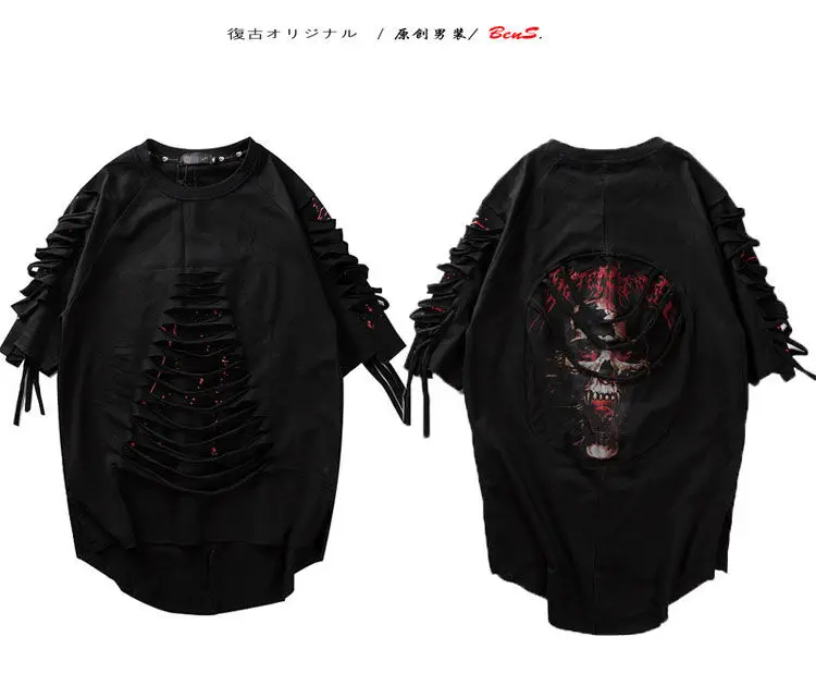 Футболка мужская оверсайз в стиле хип-хоп, повседневная тенниска в стиле Харадзюку, уличная одежда в японском стиле, Черная майка в стиле панк, для мальчиков