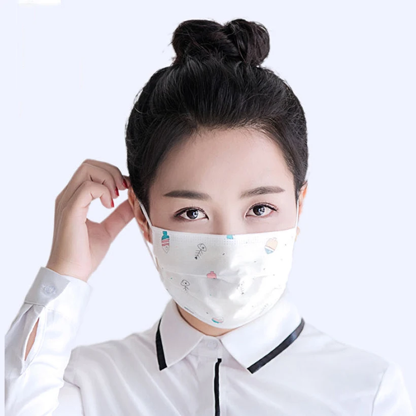 Маска для лица одноразовая с модным принтом, пылезащитная противоту...