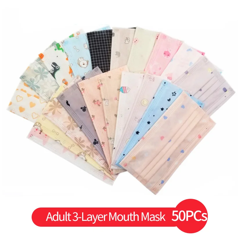 50 шт. одноразовая маска для взрослых с мультяшным принтом, трехсло...